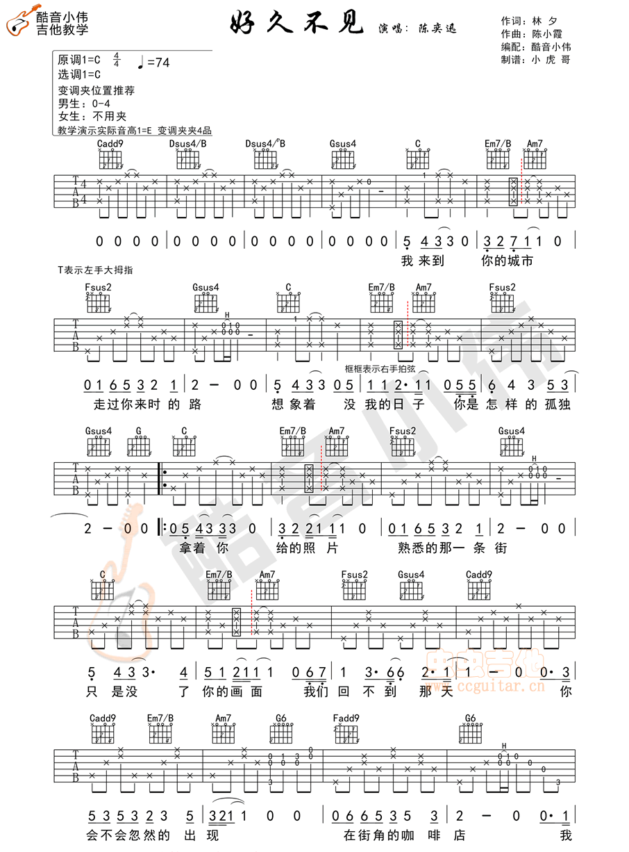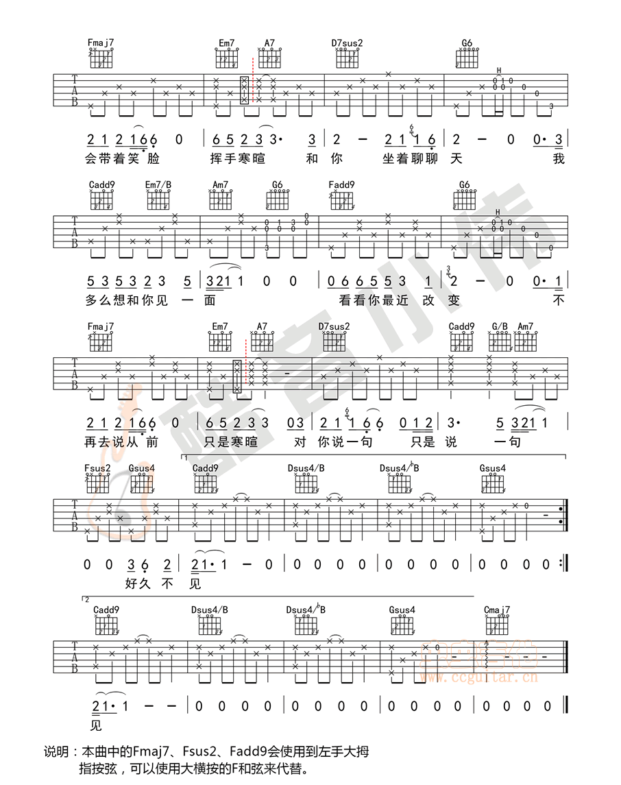 好久不见 陈奕迅 C调高清版吉他谱 - 好久不见 - C调吉他弹唱谱