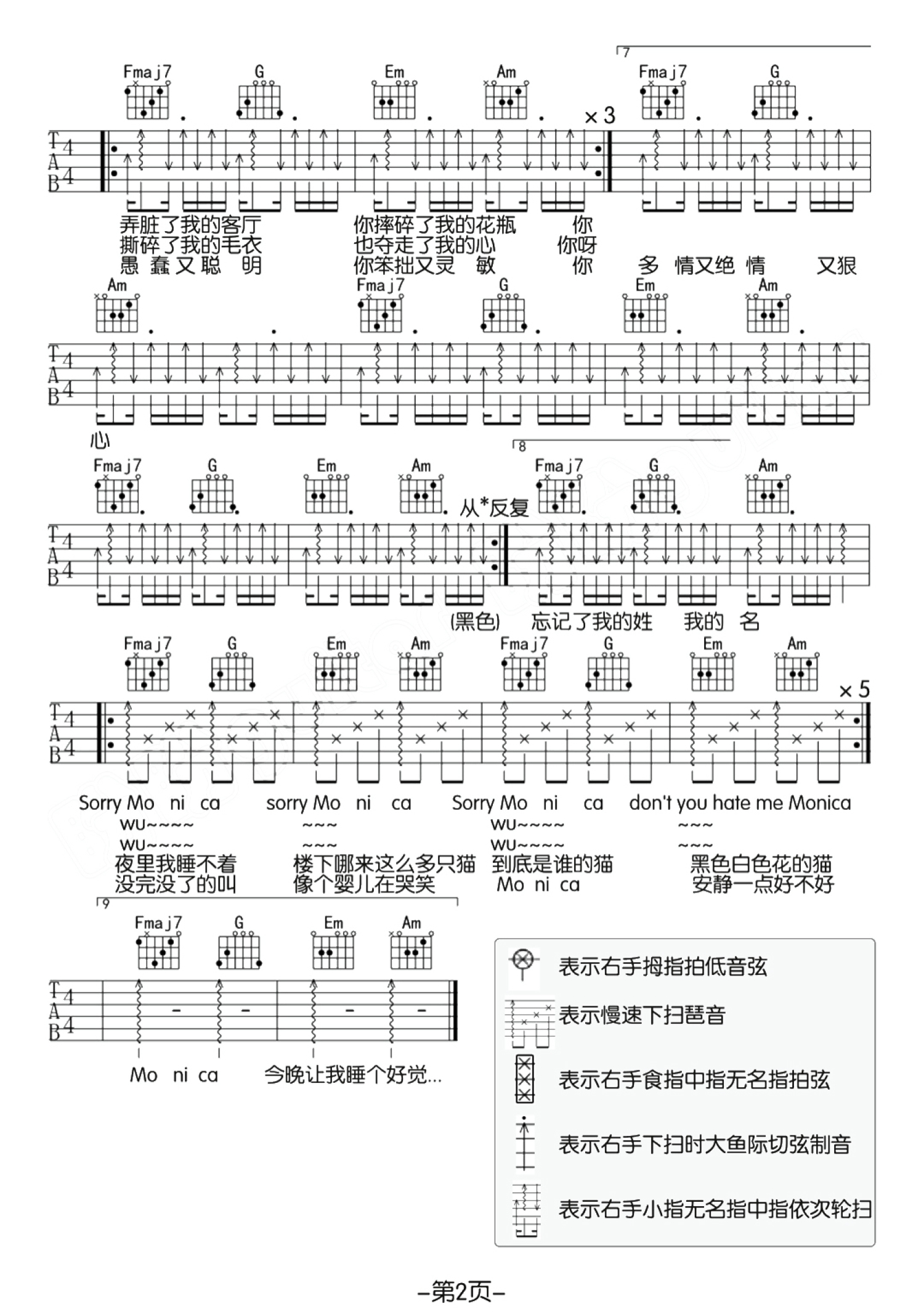 曲谱介绍: 柳爽《莫妮卡》吉他谱_C调吉他弹唱谱
