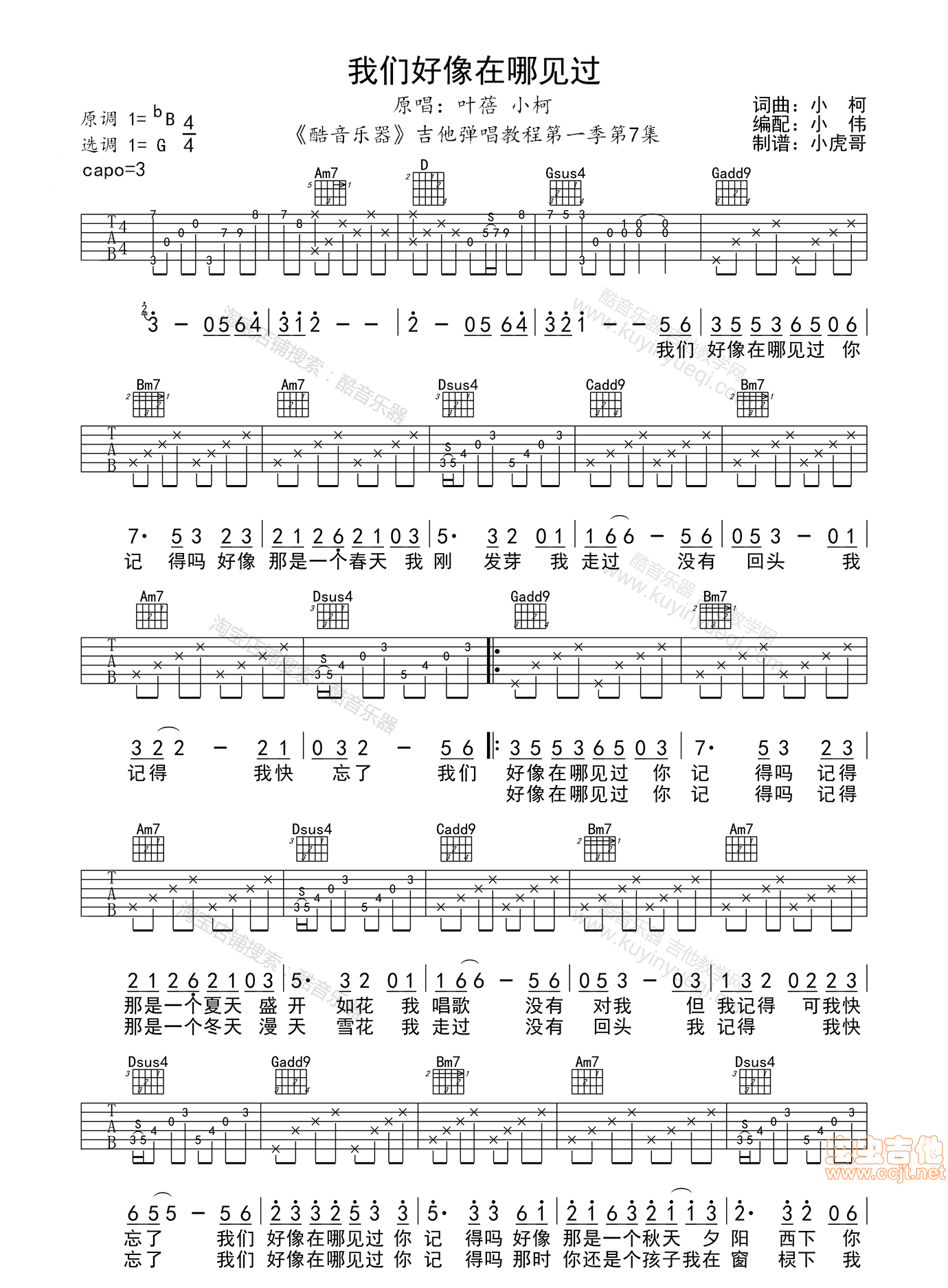 我们好像在哪见过 叶蓓 G调图片吉他谱 - 我们好像在哪见过 - G调吉他弹唱谱