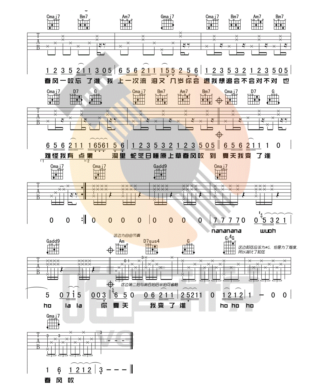当前位置:琴谱网>吉他弹唱>春风吹 方大同 C调标准版