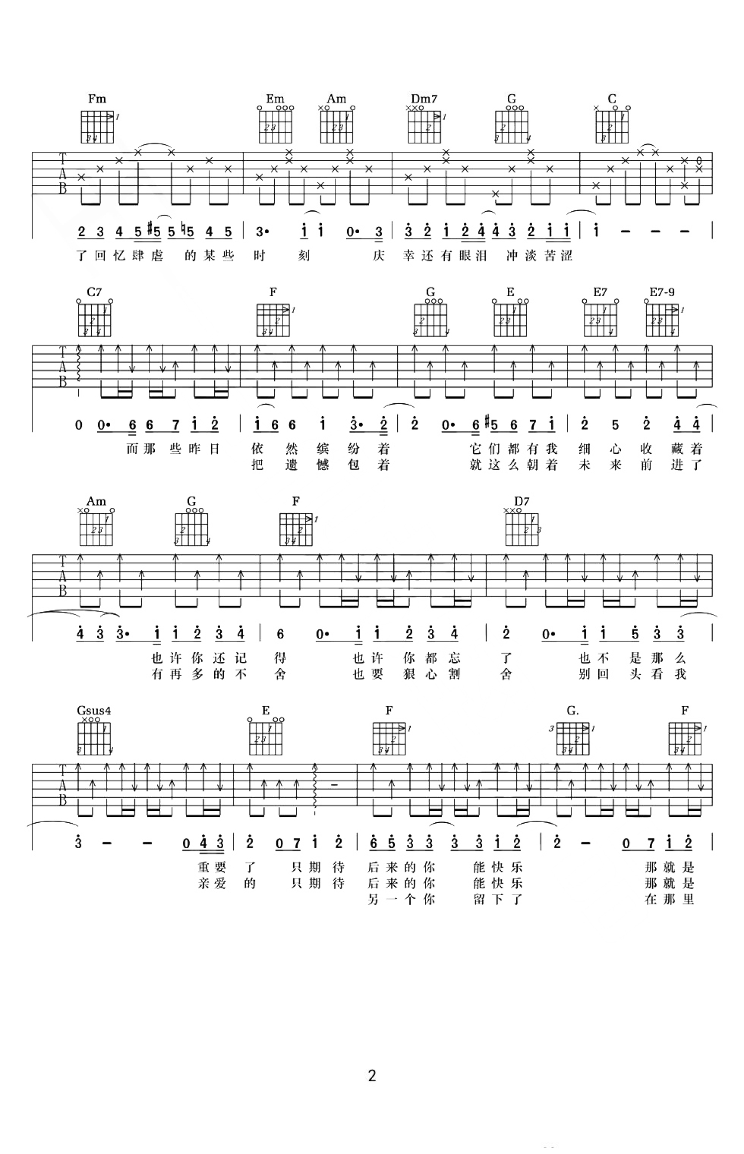 后来的我们吉他谱 - 五月天 - C调吉他弹唱谱
