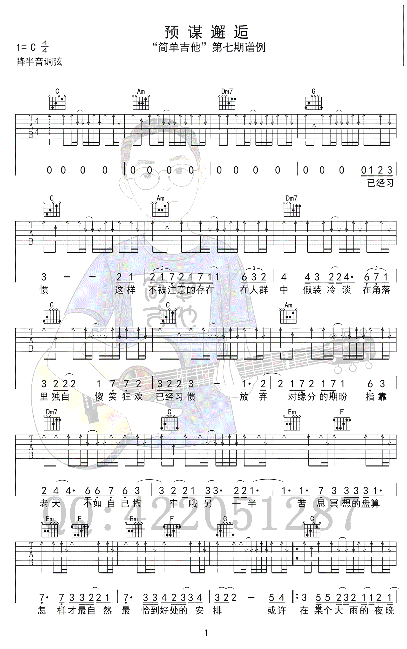 预谋邂逅 阿肆 C调吉他谱 - 预谋邂逅 - C调吉他弹唱谱