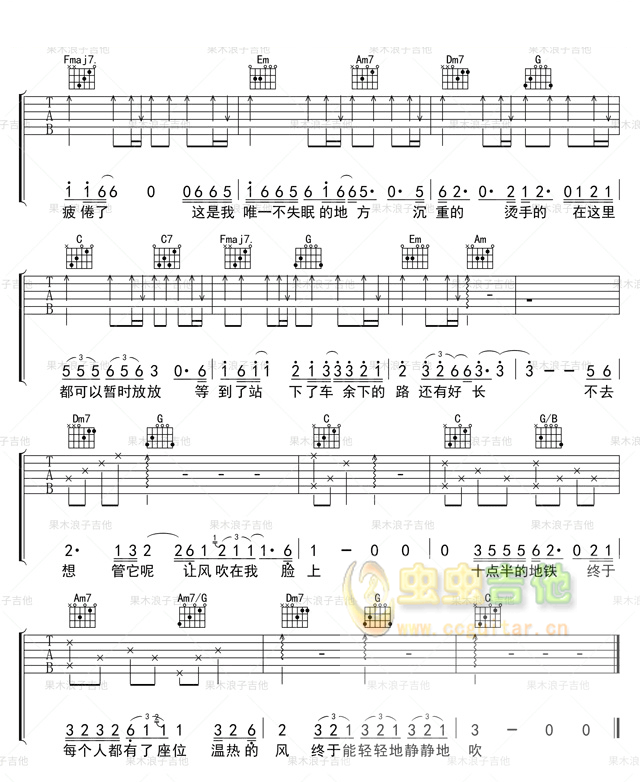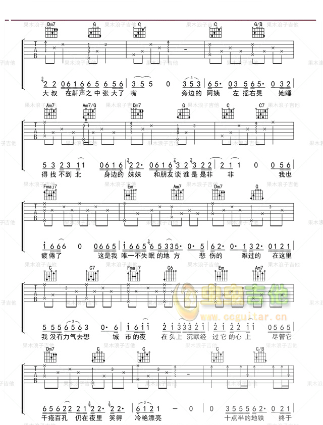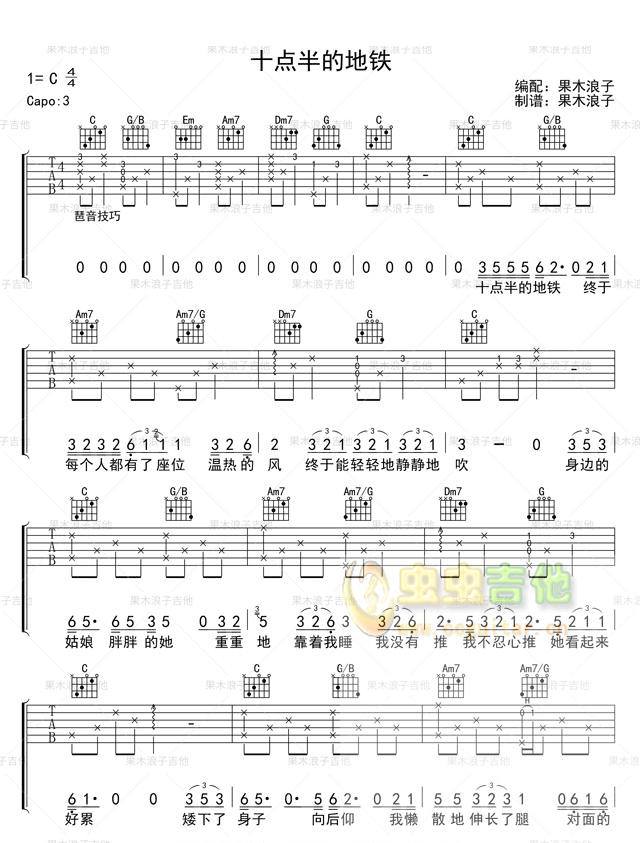 曲谱介绍: 十点半的地铁《十点半的地铁刘锦泽C调图片》吉他弹唱谱,采用C调指法编配,共有4张高清图谱。