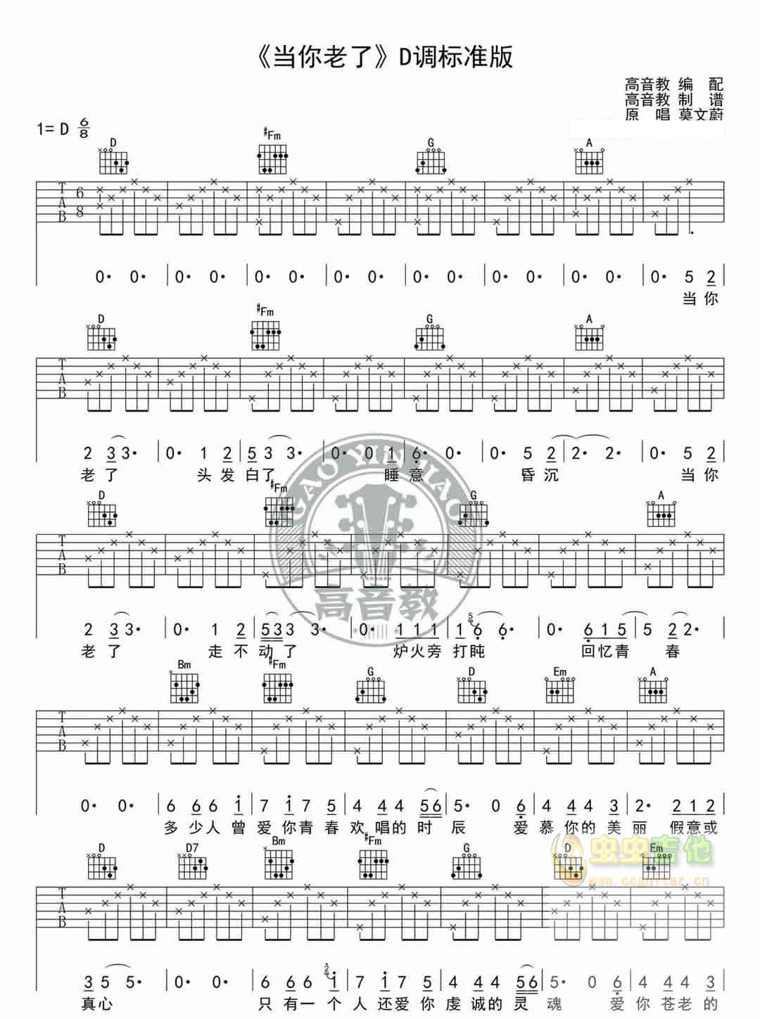 当你老了 D调图片吉他谱 - 当你老了 - D调吉他弹唱谱
