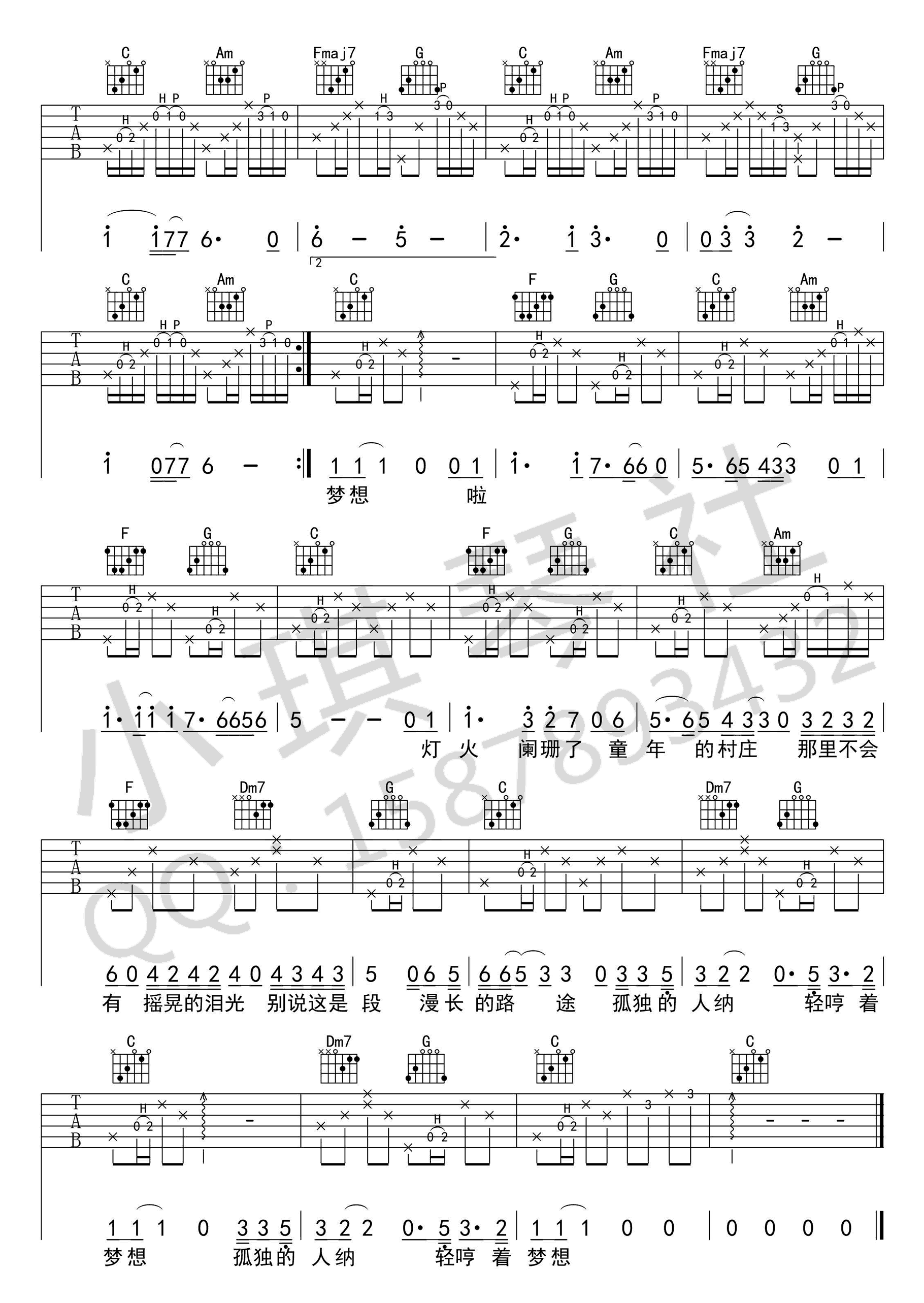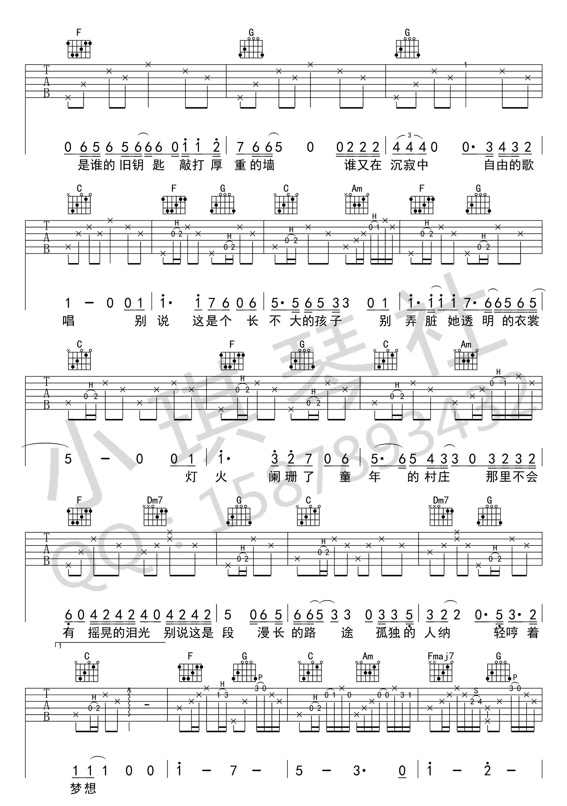当前位置:琴谱网>吉他弹唱>夕阳下的顾城 墙宇飞蝶 C调指法高清版