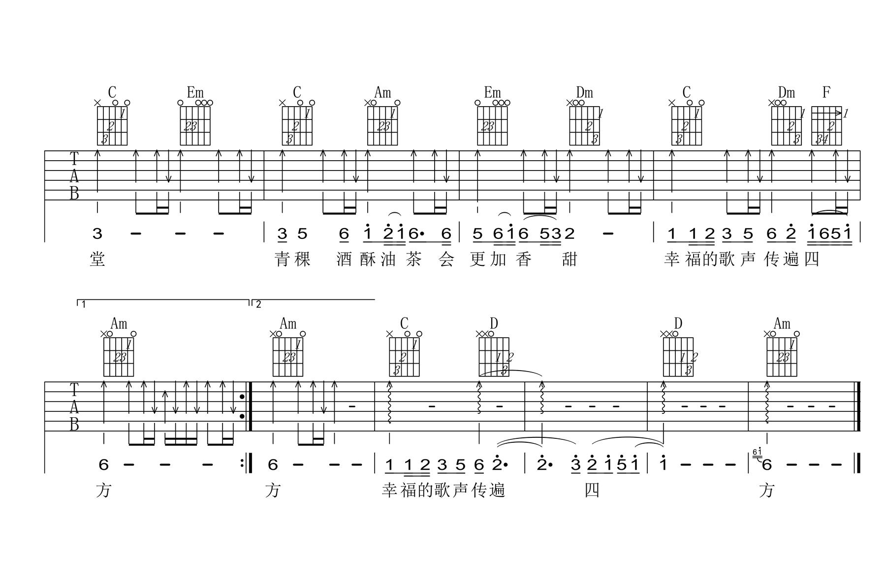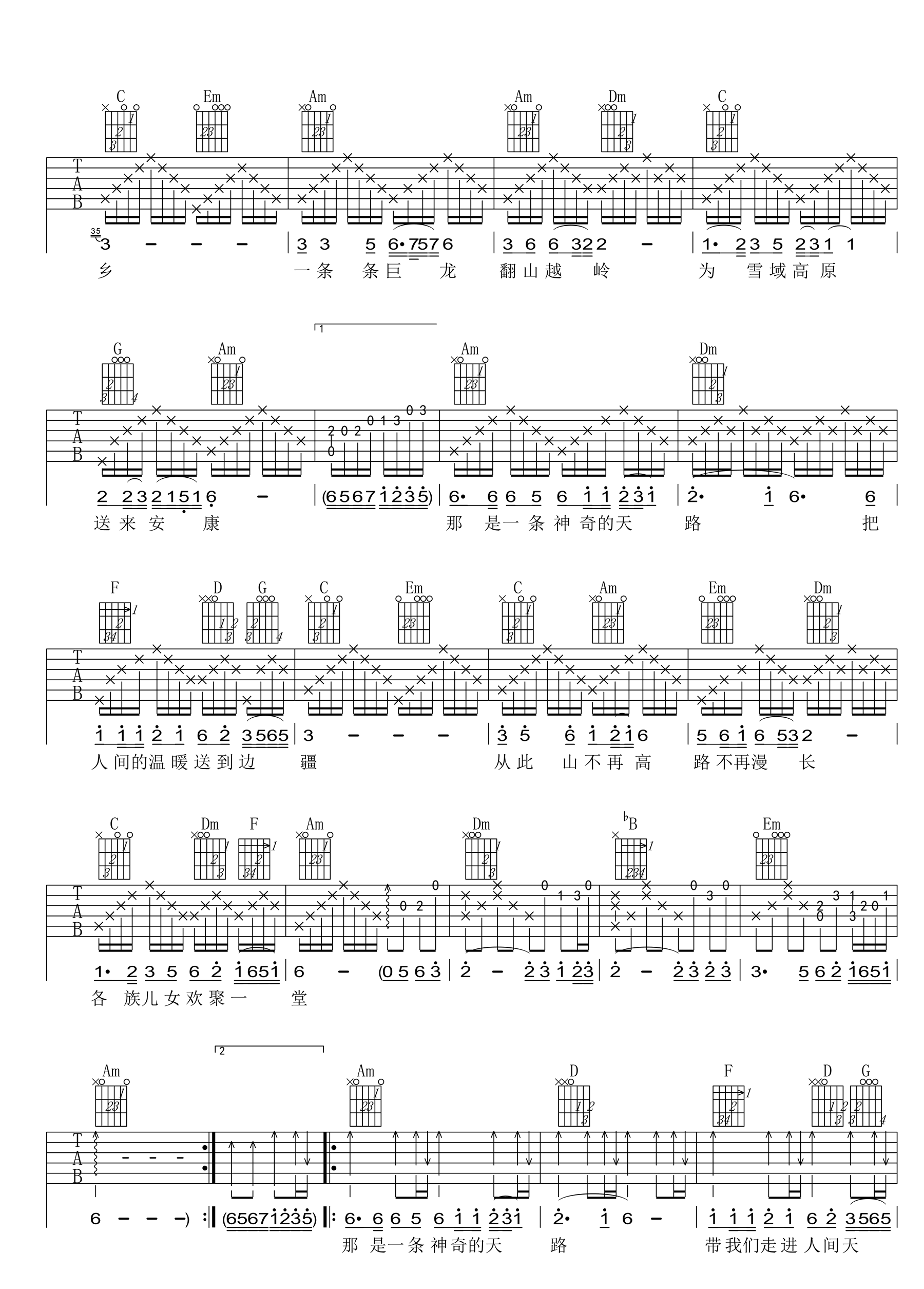 当前位置:琴谱网>吉他弹唱>天路 韩红 C调六线