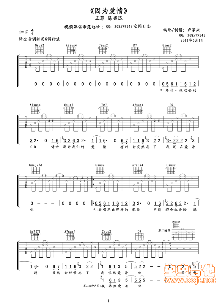 因为爱情吉他谱 - G调吉他弹唱谱