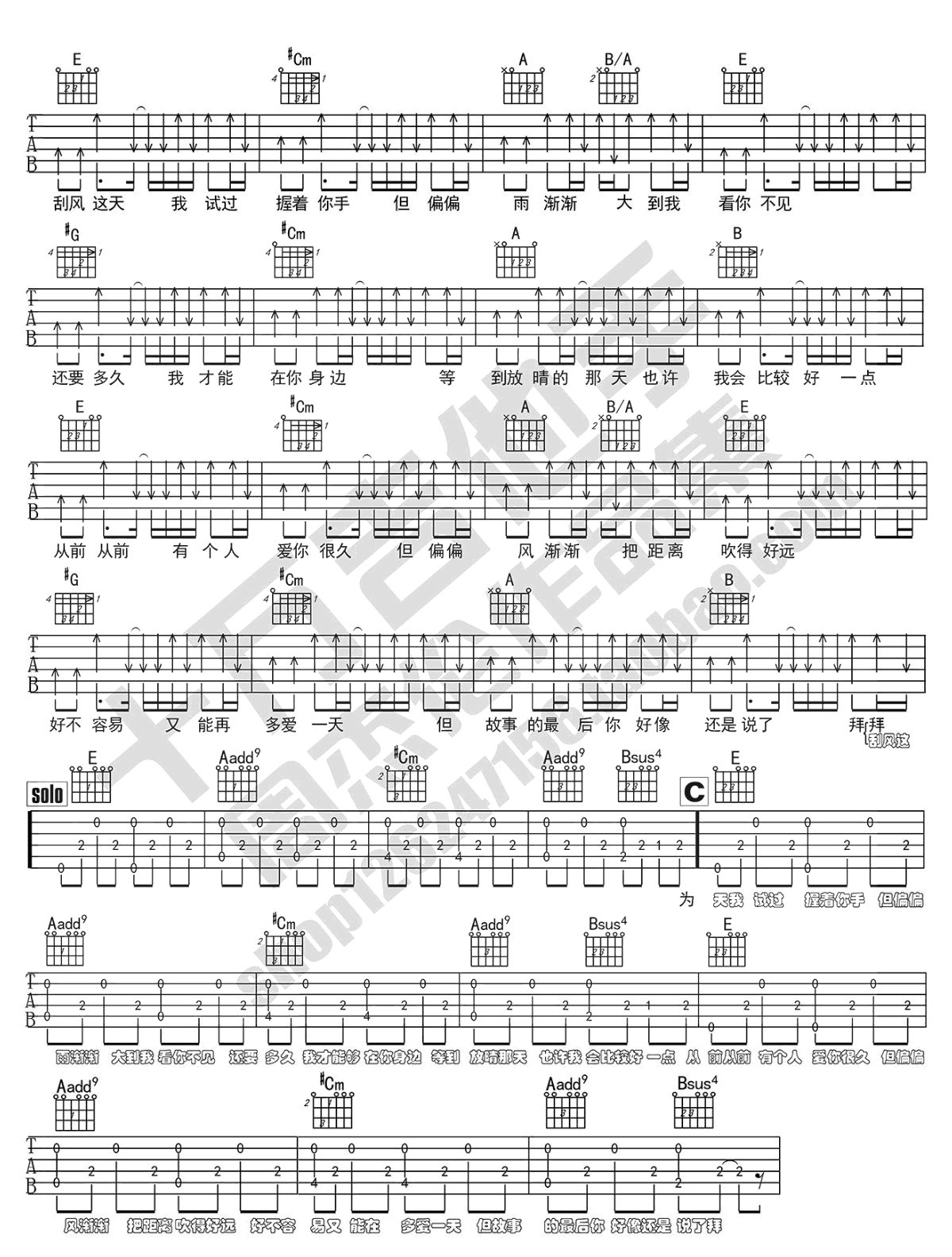 晴天 周杰伦 E调指法完整版吉他谱 - 晴天 - E调吉他弹唱谱
