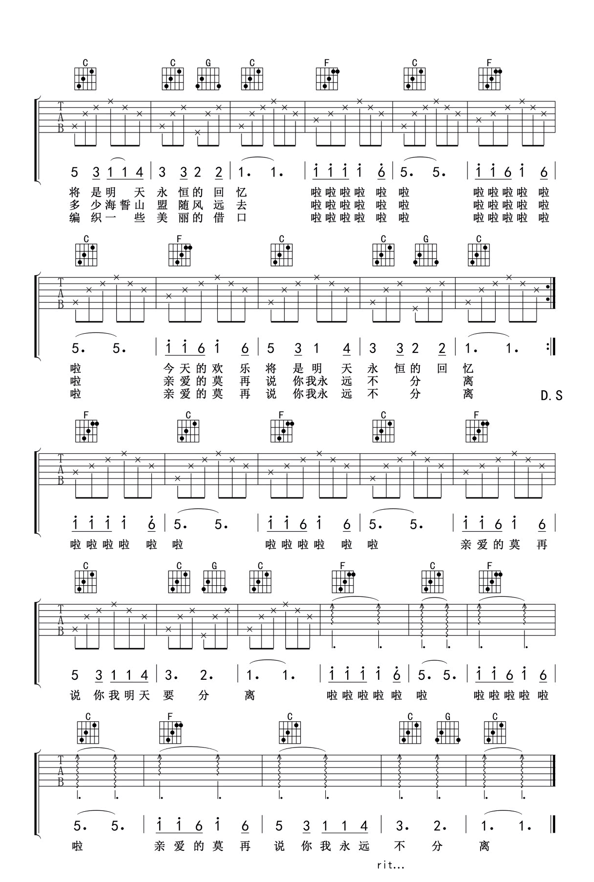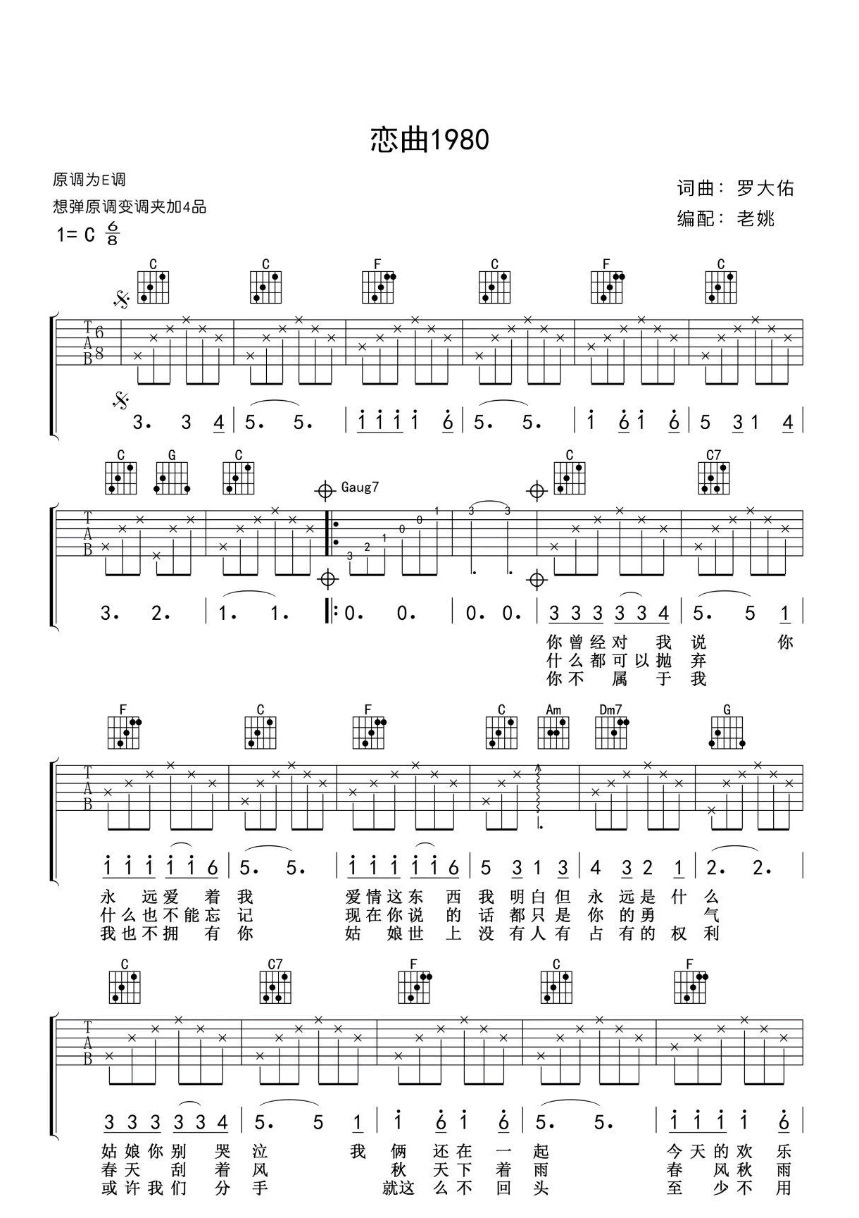 恋曲1980 罗大佑 C调吉他谱 - 恋曲1980 - C调吉他弹唱谱