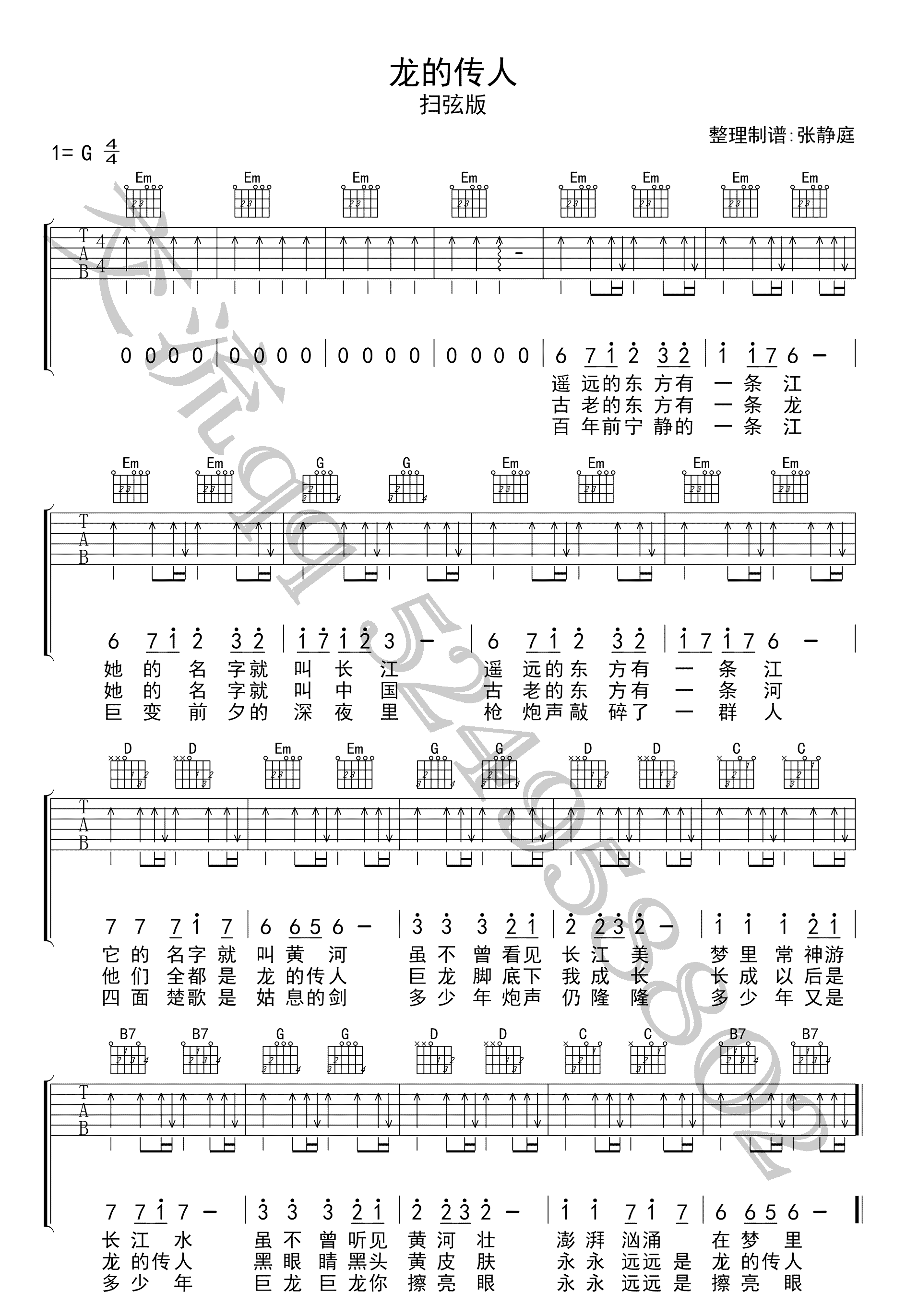 龙的传人 G调扫弦版 王力宏/张明敏 图片吉他谱 - 龙的传人 - G调吉他弹唱谱