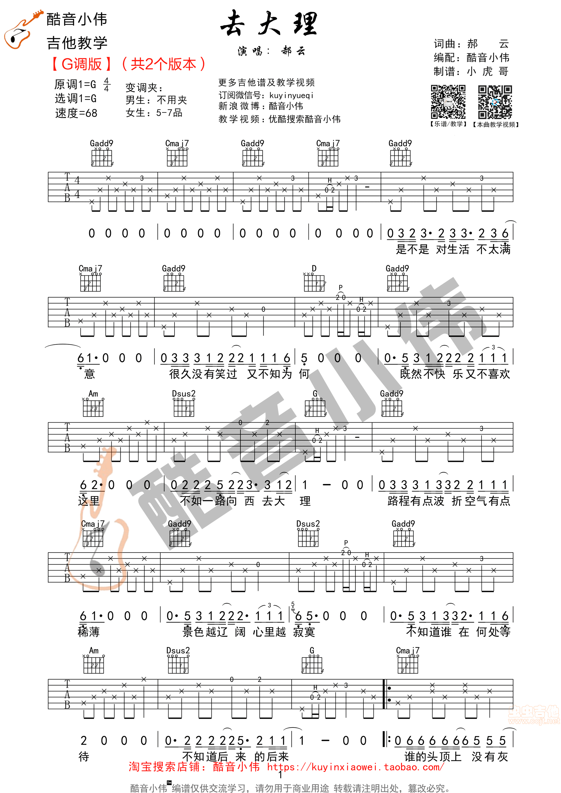 去大理吉他谱 - G调吉他弹唱谱 - 原版
