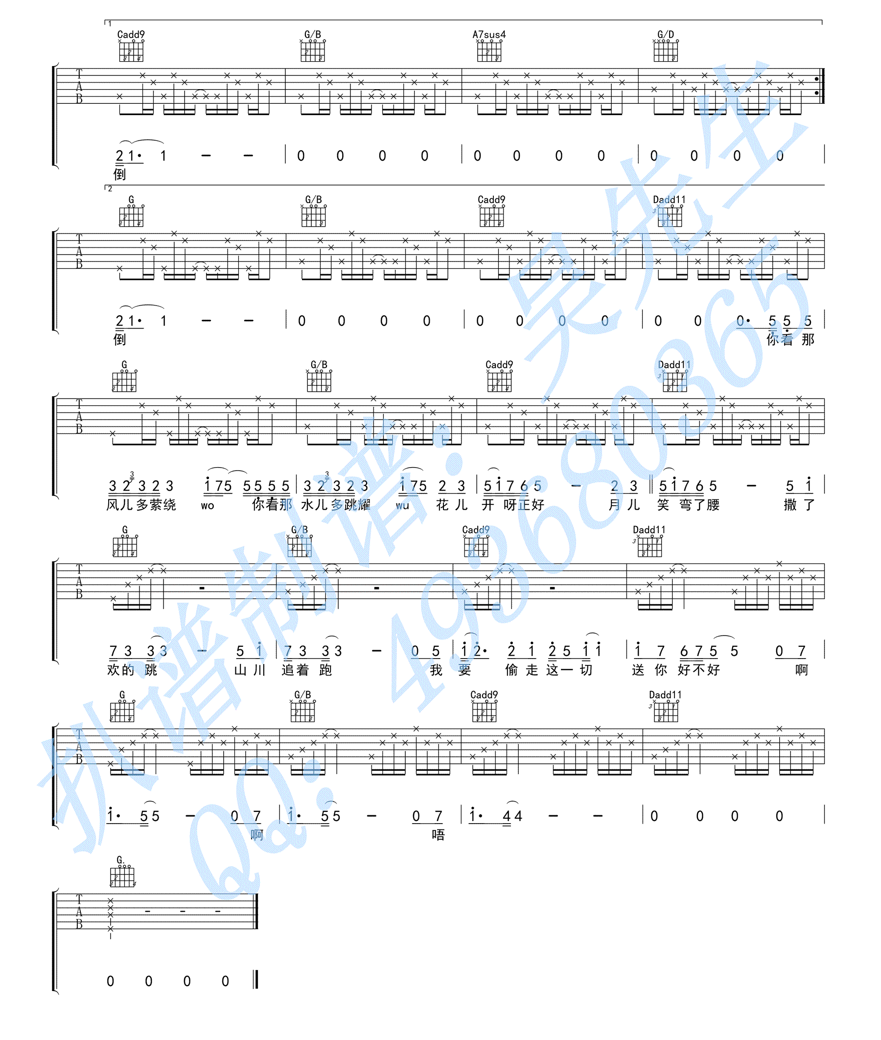 当前位置:琴谱网>吉他弹唱>赧然的贼 焦迈奇 G调 六线