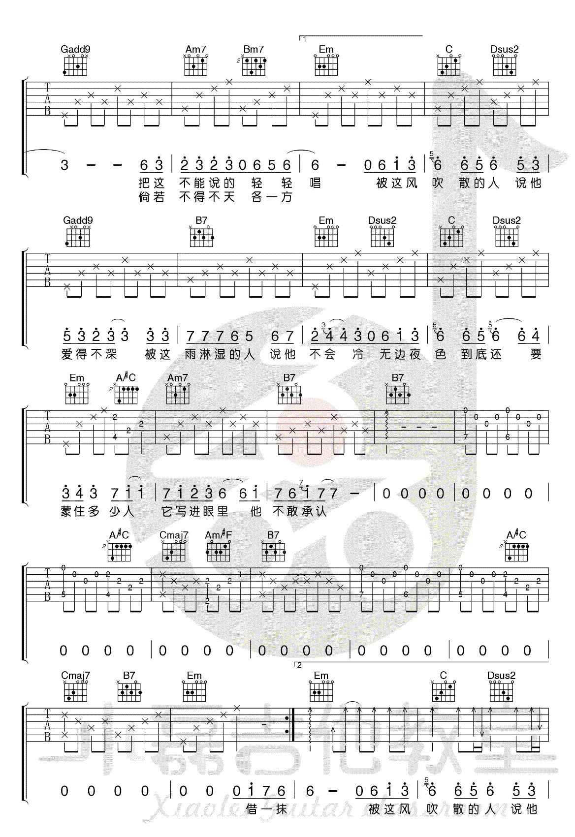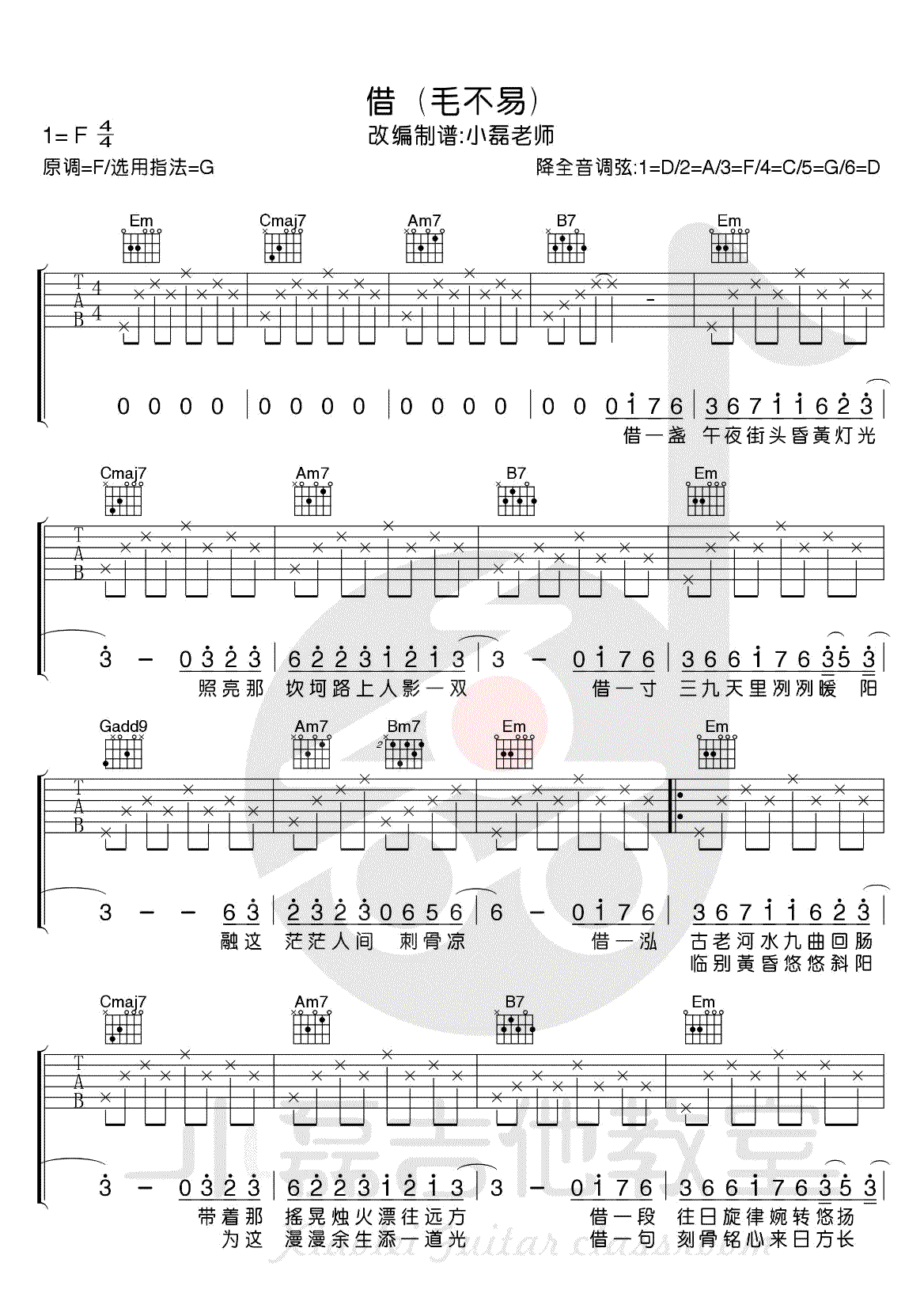 借 毛不易 G调原版编配高清版吉他谱 - 借 - G调吉他弹唱谱 - 原版