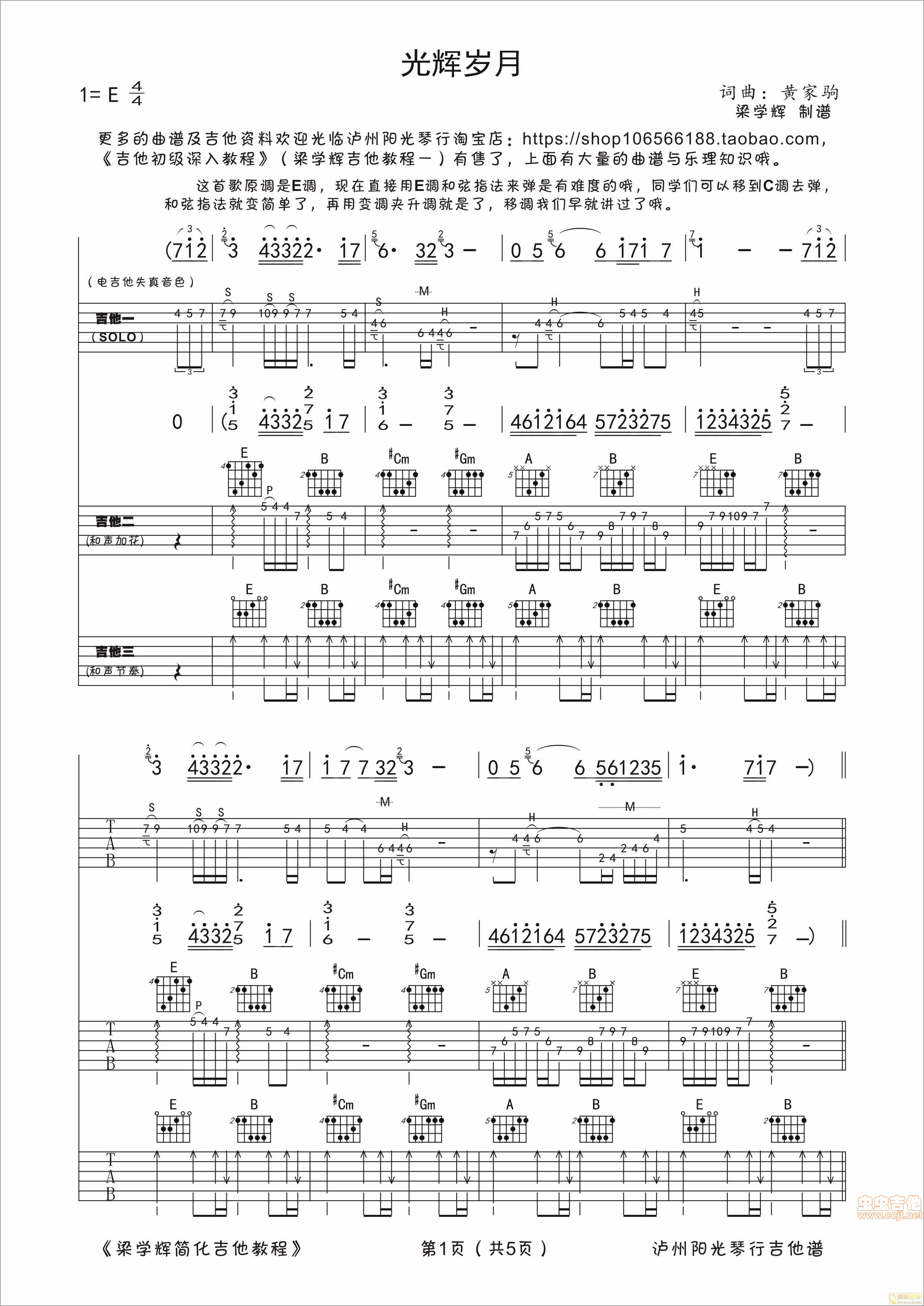 光辉岁月吉他谱 - E调吉他弹唱谱 - 原版