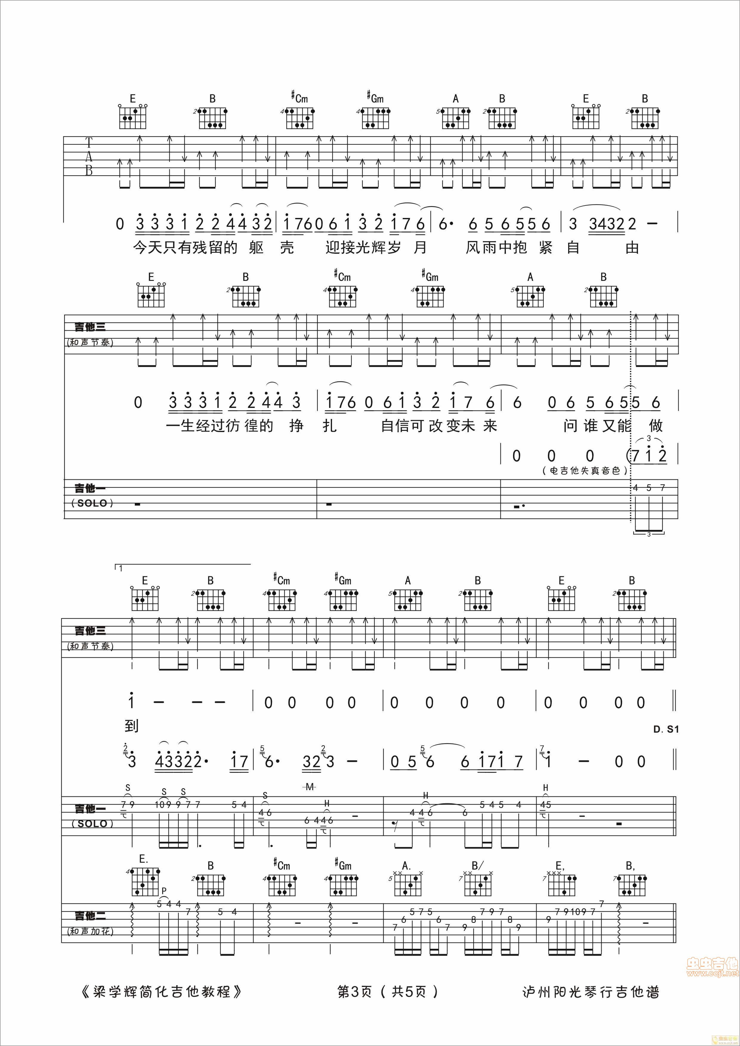 曲谱介绍: 《光辉岁月》吉他弹唱谱,采用E调指法编配原版,共有5张高清图谱。