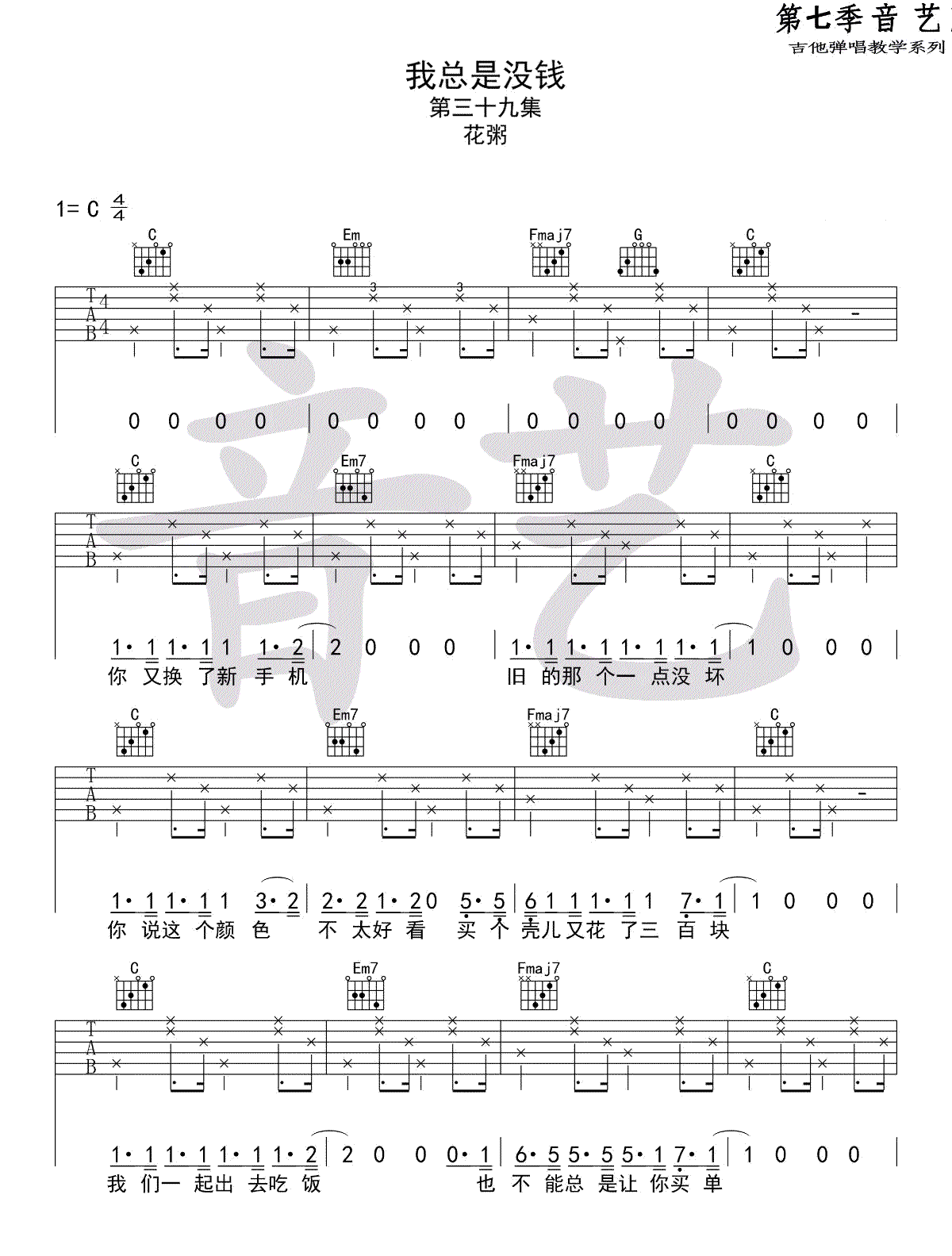 我总是没钱 花粥 C调吉他谱 - 我总是没钱 - C调吉他弹唱谱