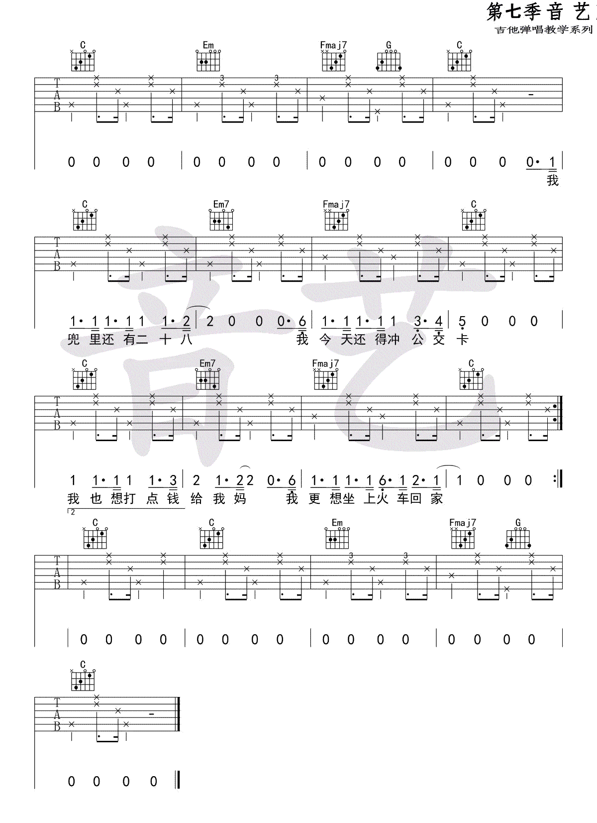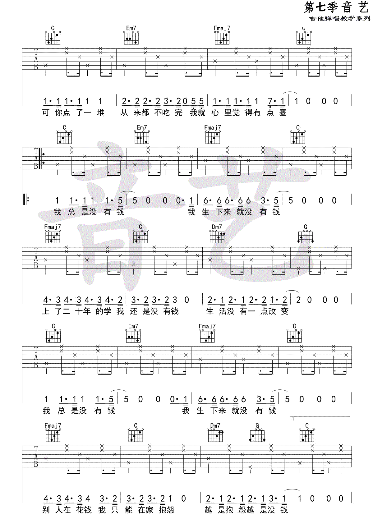 当前位置:琴谱网>吉他弹唱>我总是没钱 花粥 C调