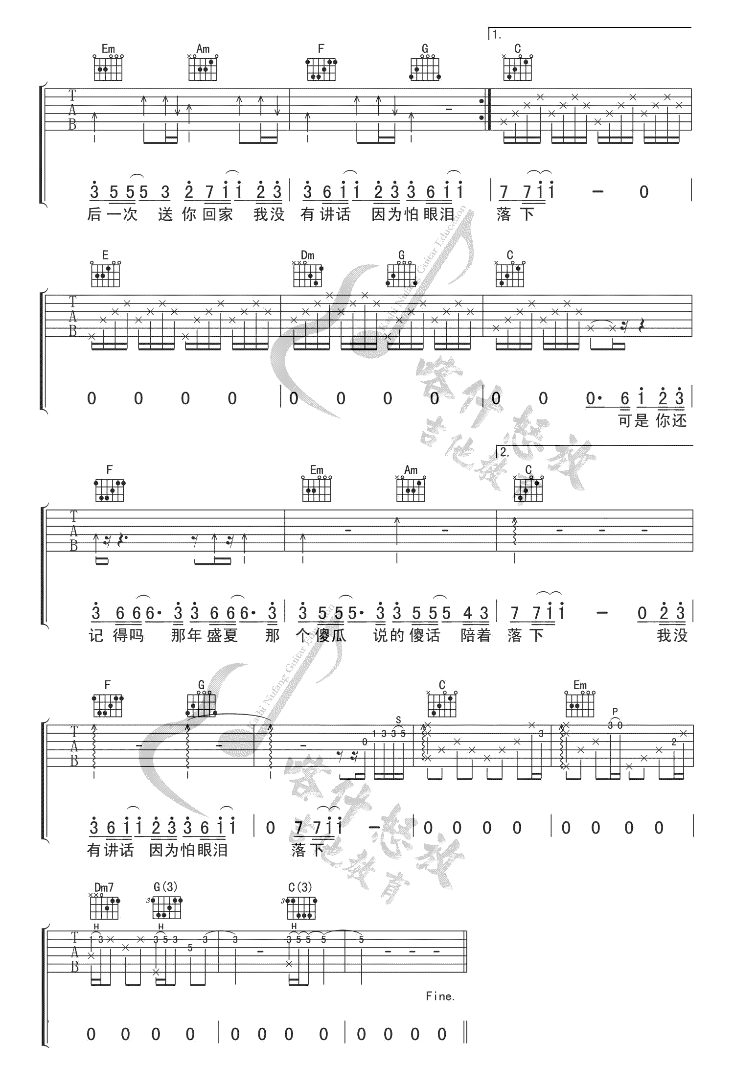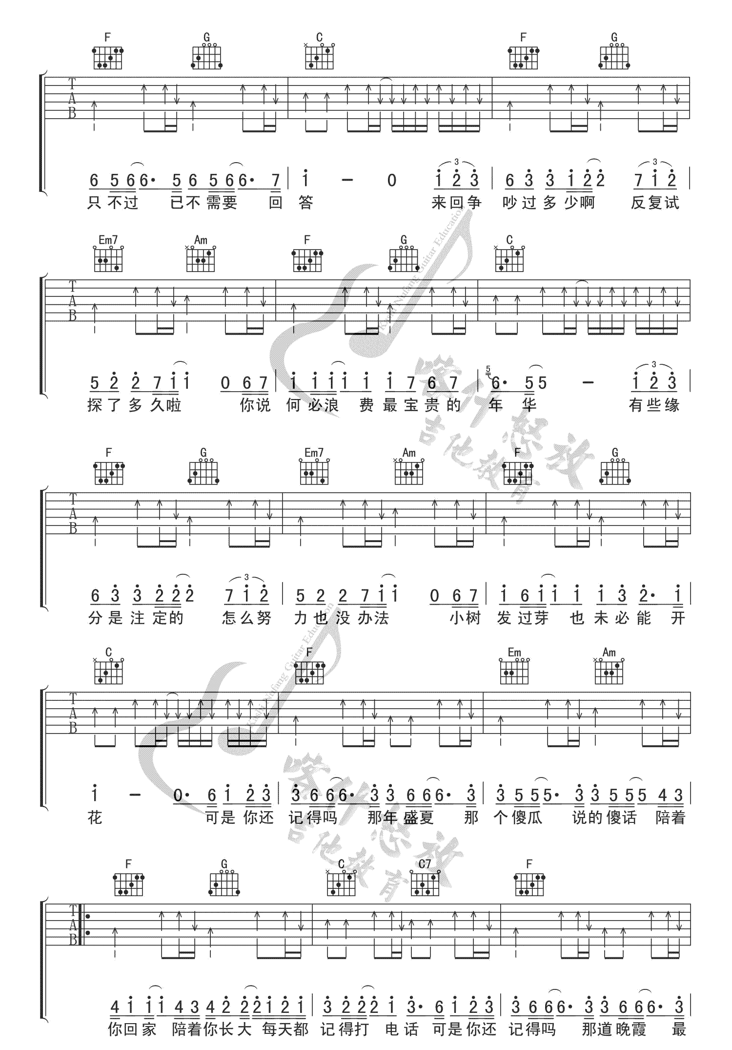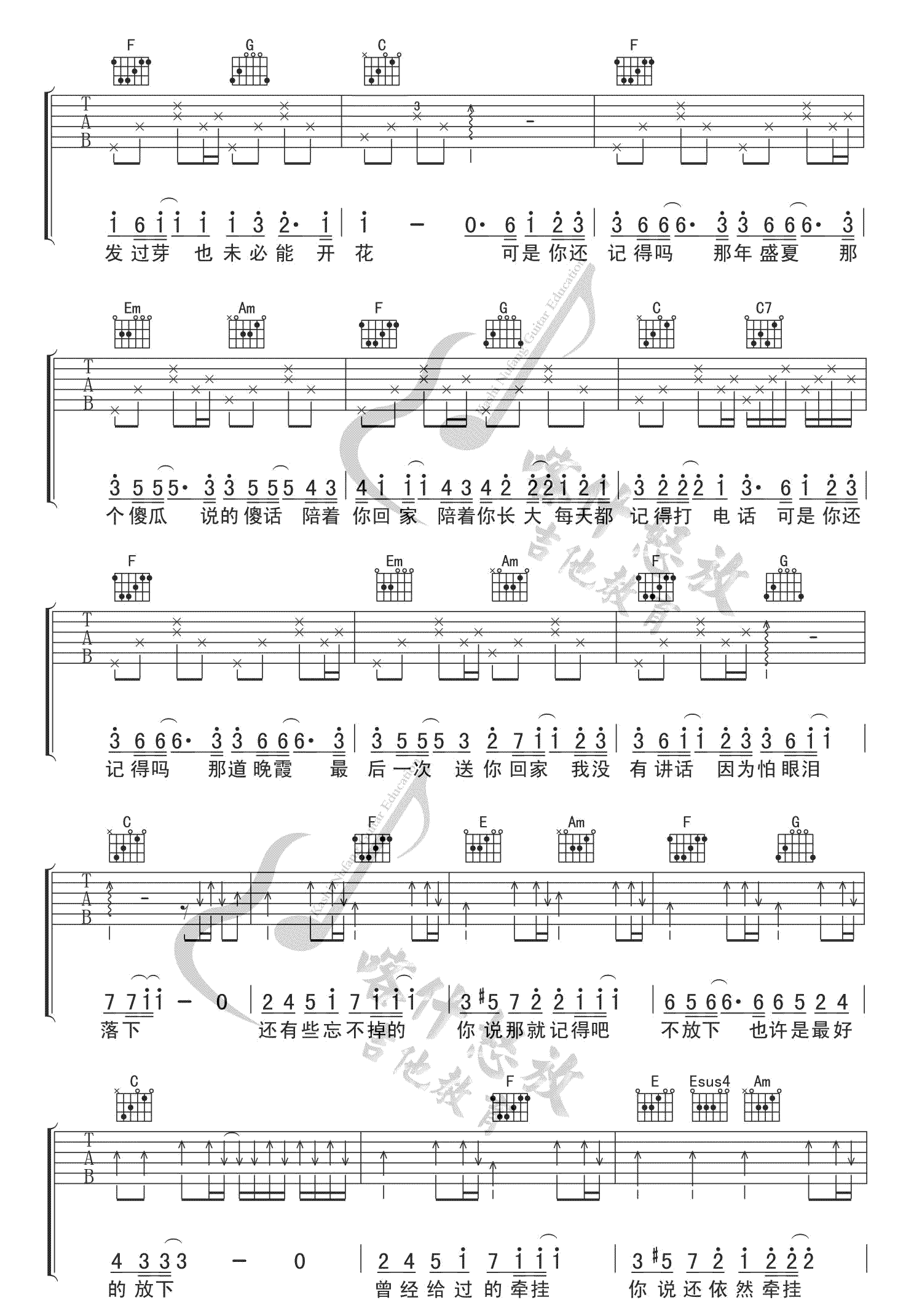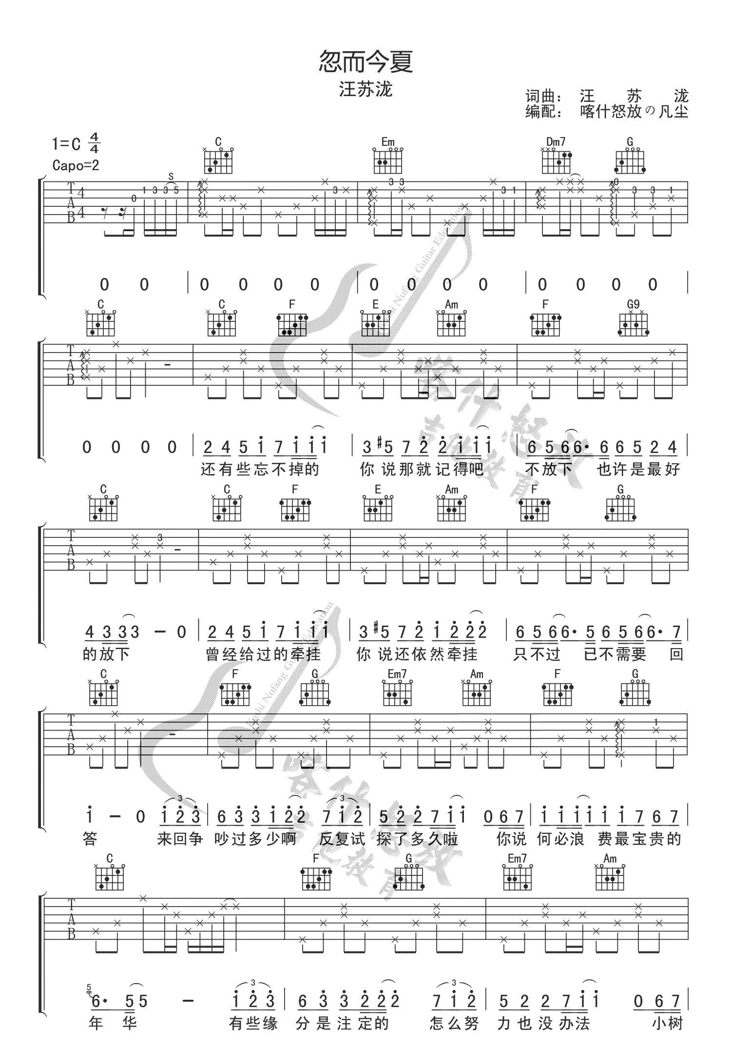 忽而今夏 汪苏泷 C调吉他谱 - 忽而今夏 - C调吉他弹唱谱