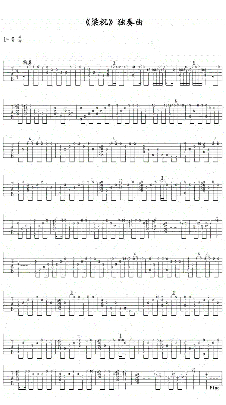 梁祝吉他谱 - 梁祝指弹 - 吉他独奏谱