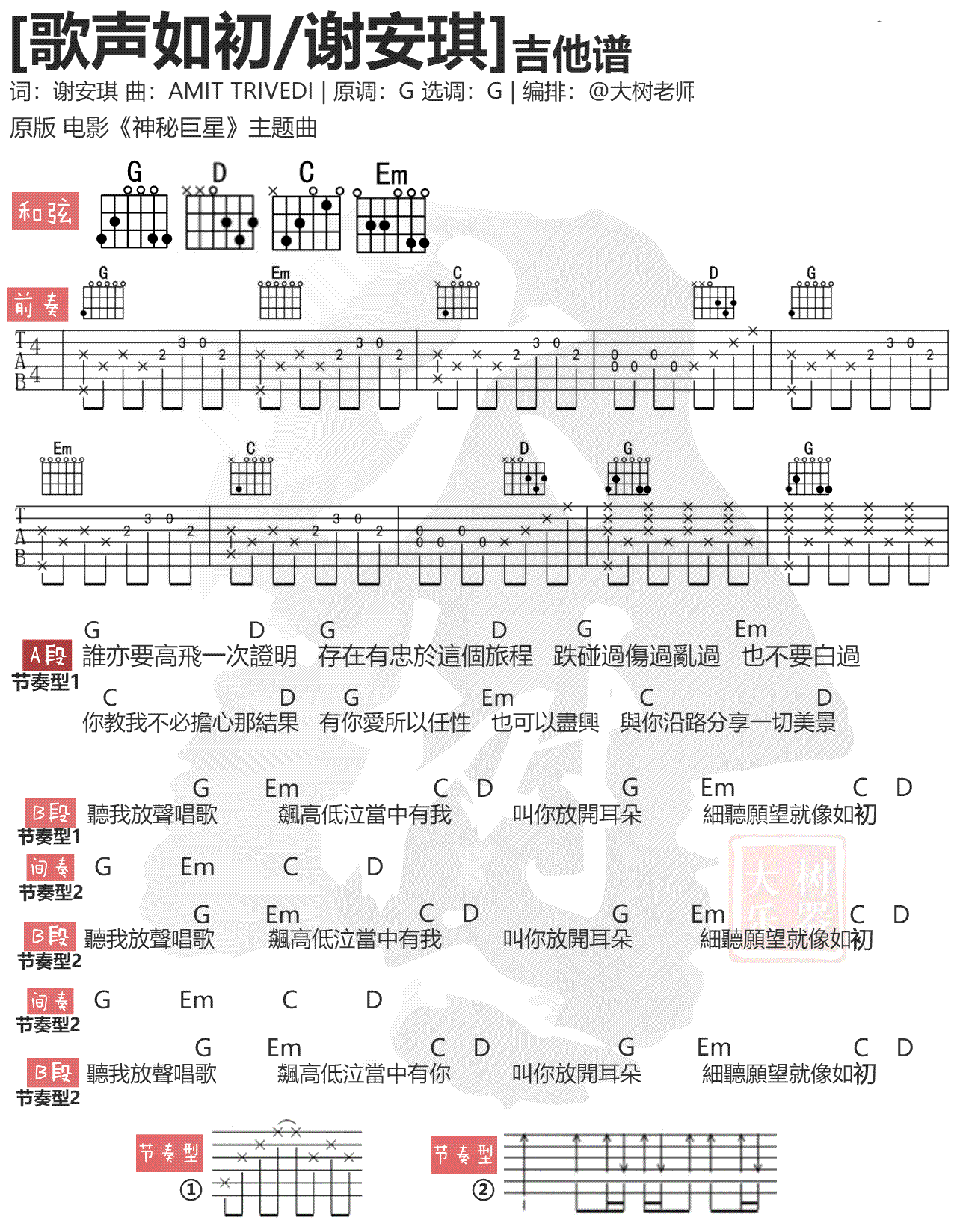 神秘巨星吉他谱 - 歌声如初 - G调吉他弹唱谱