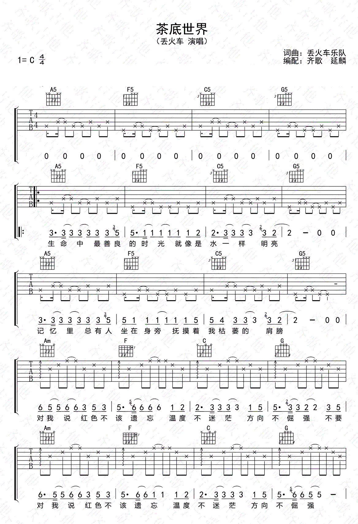 茶底世界 丢火车乐队 C调吉他谱 - 茶底世界 - C调吉他弹唱谱