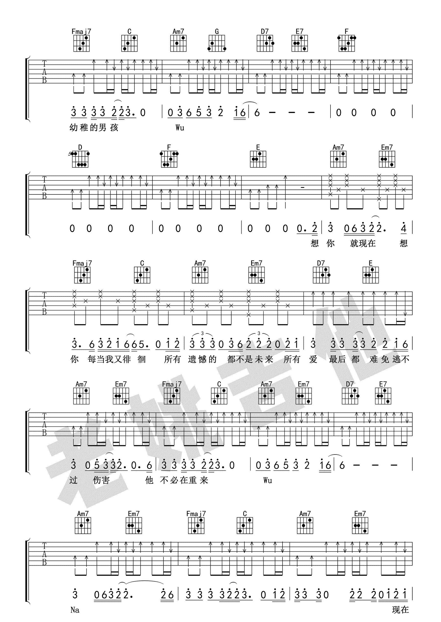 当前位置:琴谱网>吉他弹唱>男孩 梁博 C调