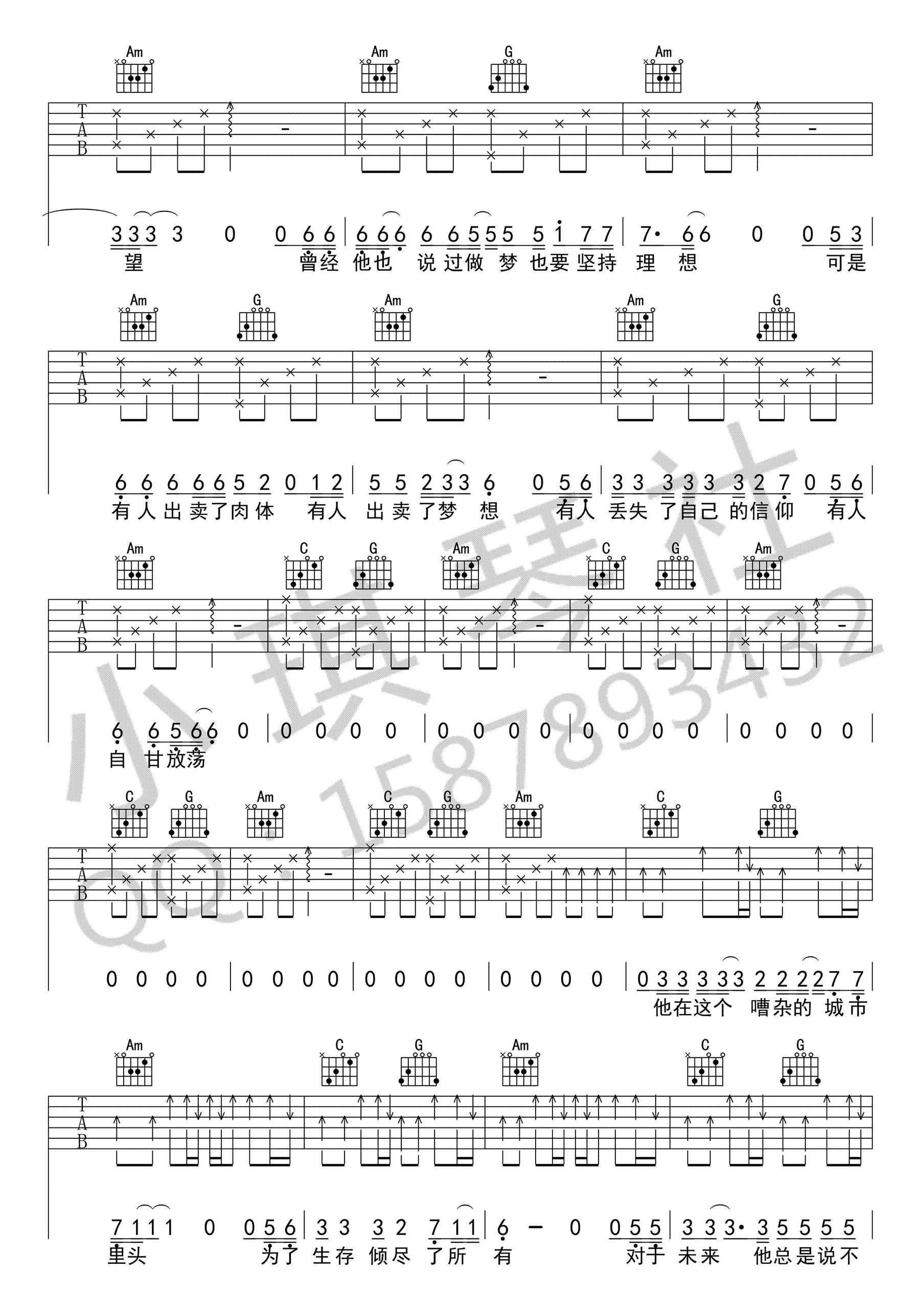 城市 C调吉他谱 - 城市 - C调吉他弹唱谱
