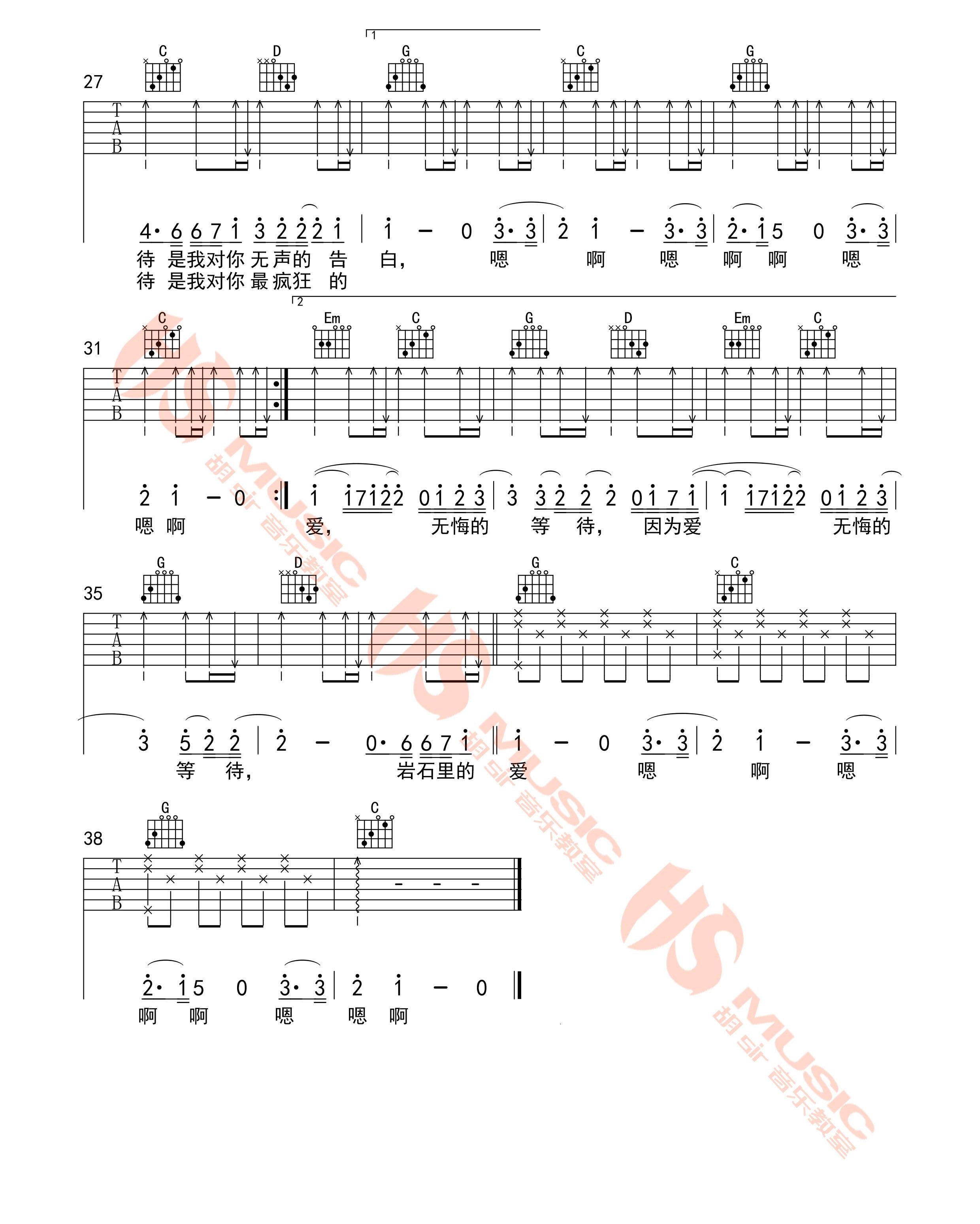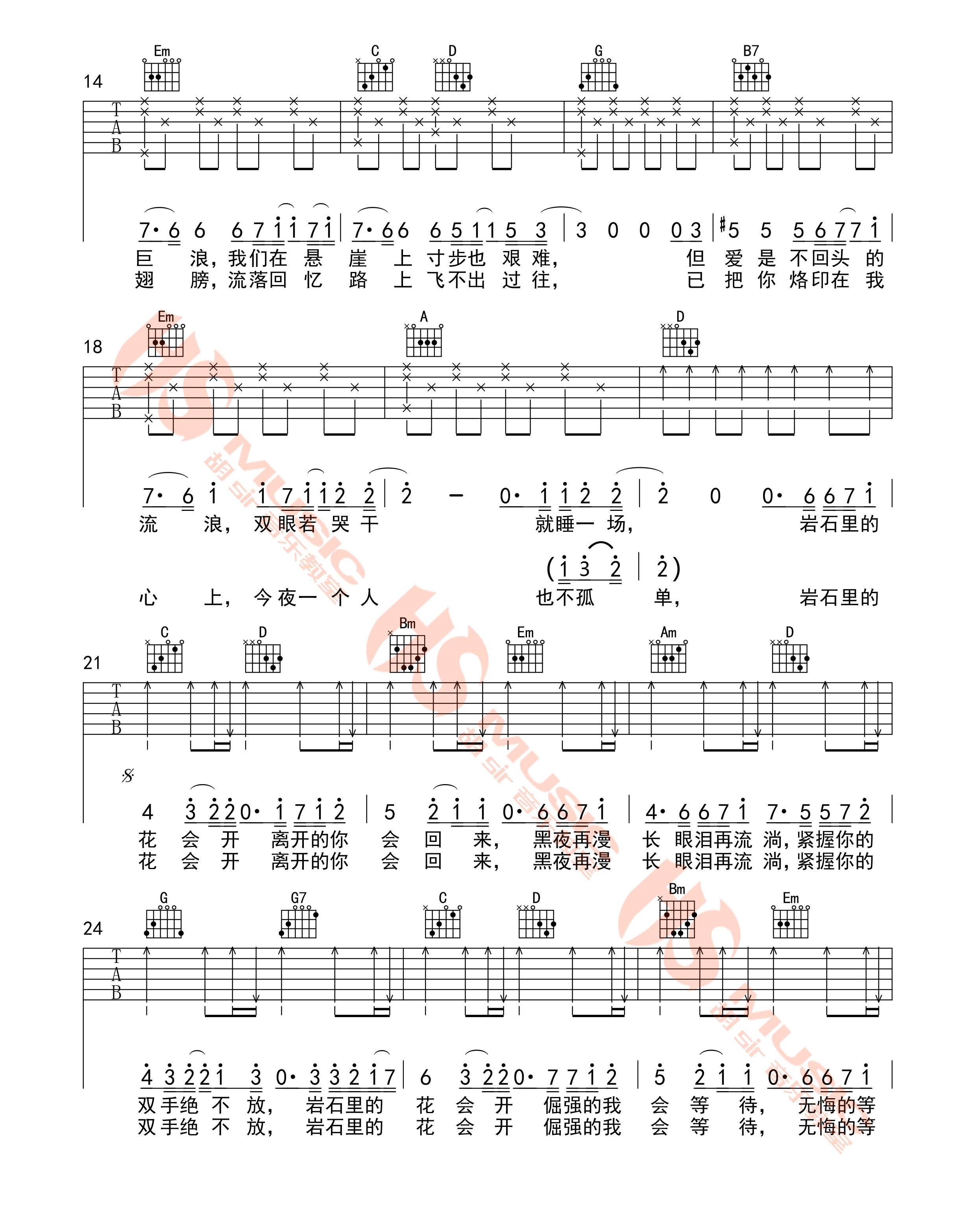 当前位置:琴谱网>吉他弹唱>岩石里的花 邓紫棋 G调六线
