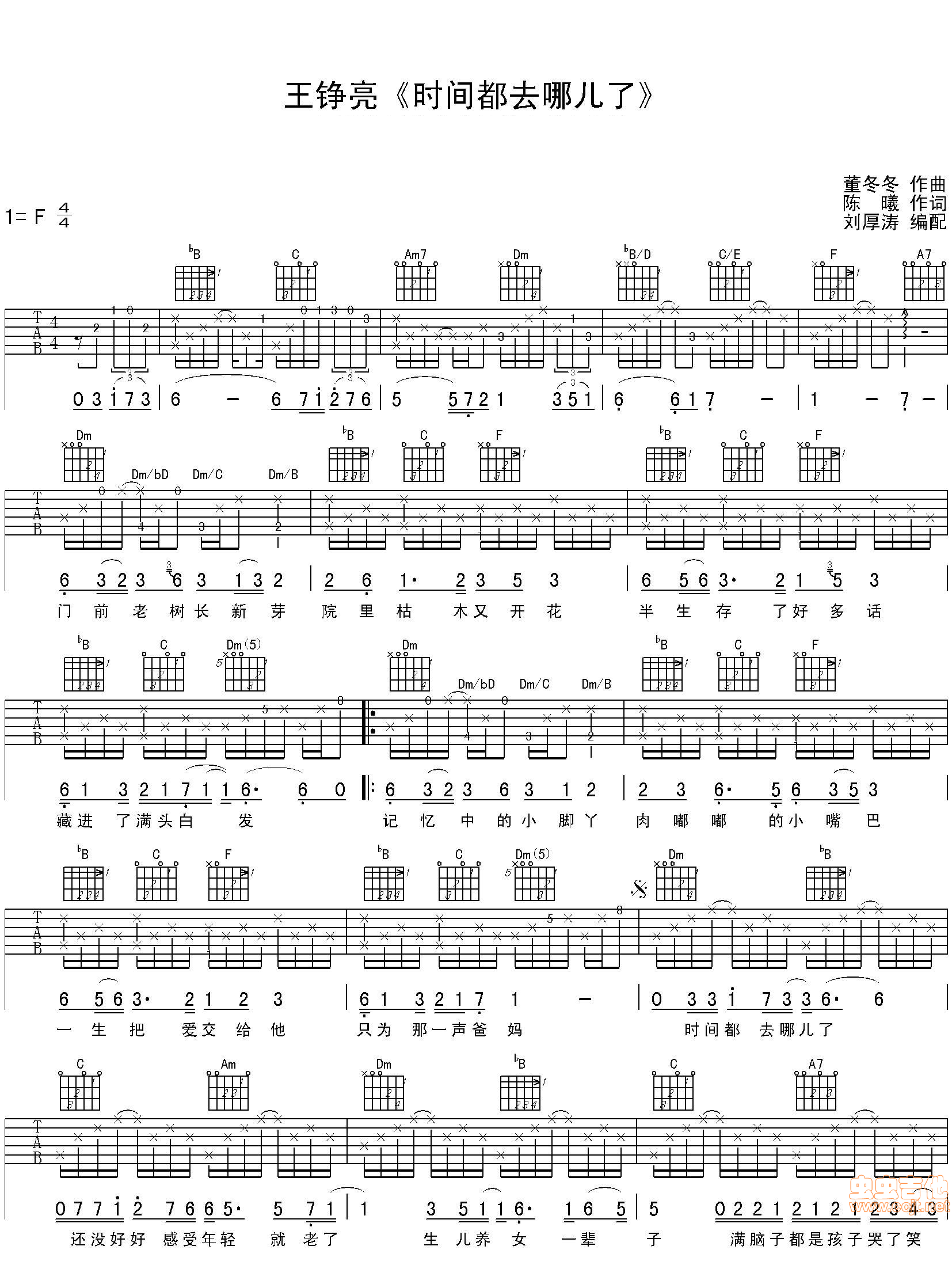 时间都去哪儿了 王铮亮 F调图片吉他谱 - 时间都去哪儿了 - F调吉他弹唱谱