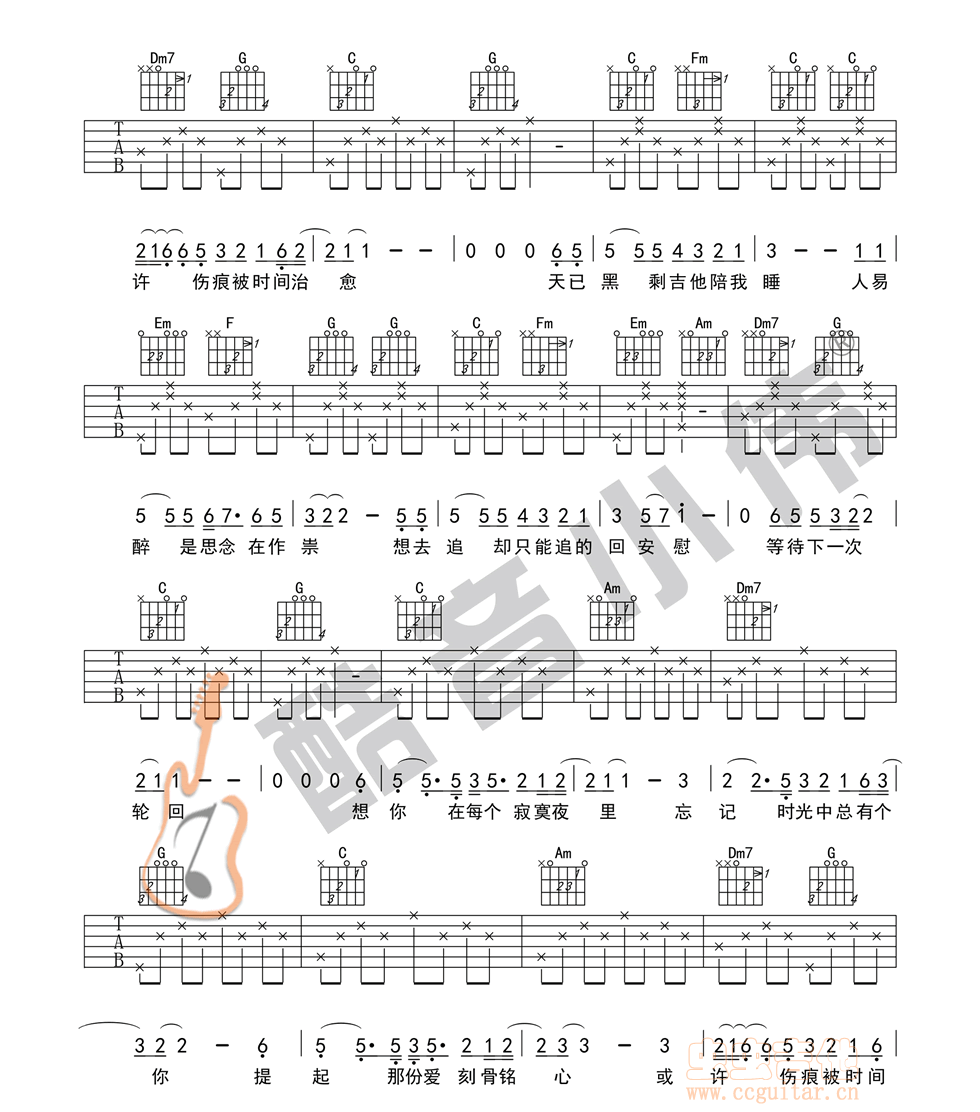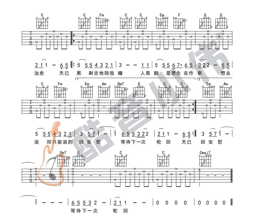 当前位置:琴谱网>吉他弹唱>天已黑 杨宗纬 C调图片