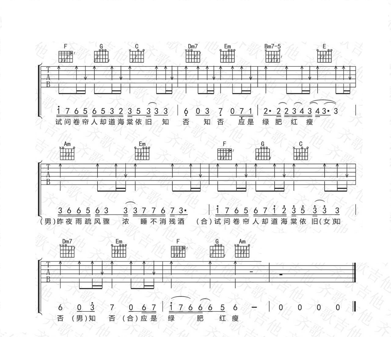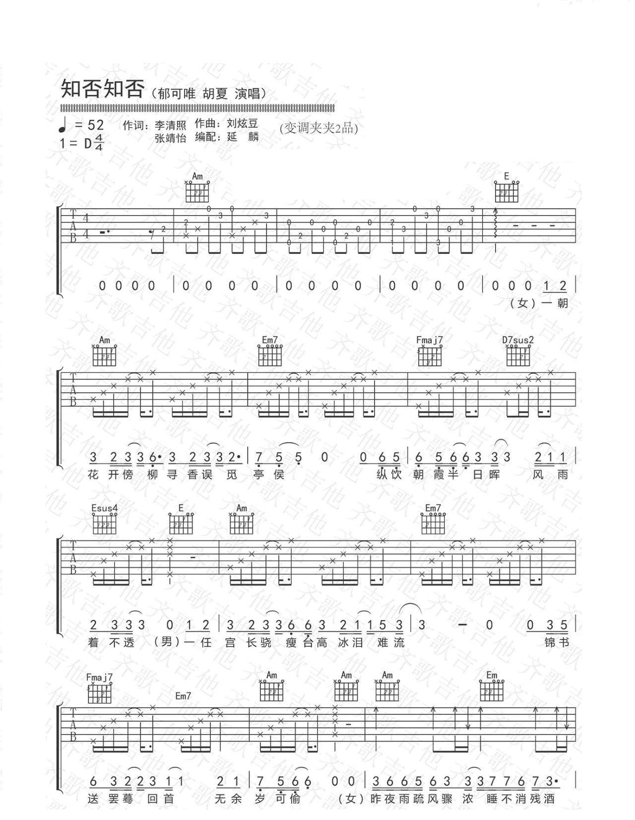 知否知否 胡夏/郁可唯 D调六线吉他谱 - 知否知否 - D调吉他弹唱谱