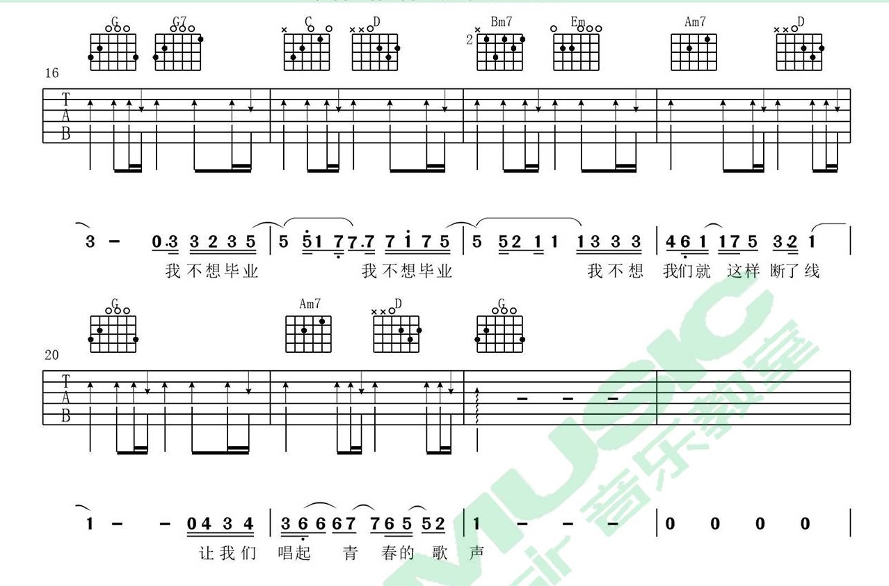当前位置:琴谱网>吉他弹唱>我不想毕业 薛之谦/杨迪 G调指法六线