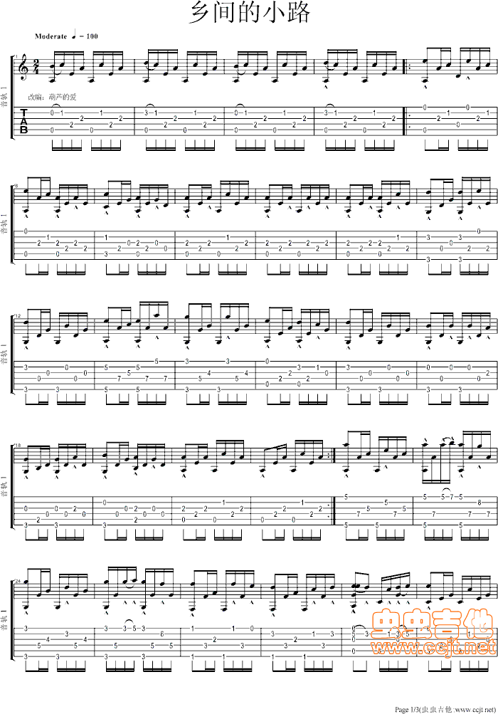 乡间的小路(完整版)吉他谱 - 吉他独奏谱