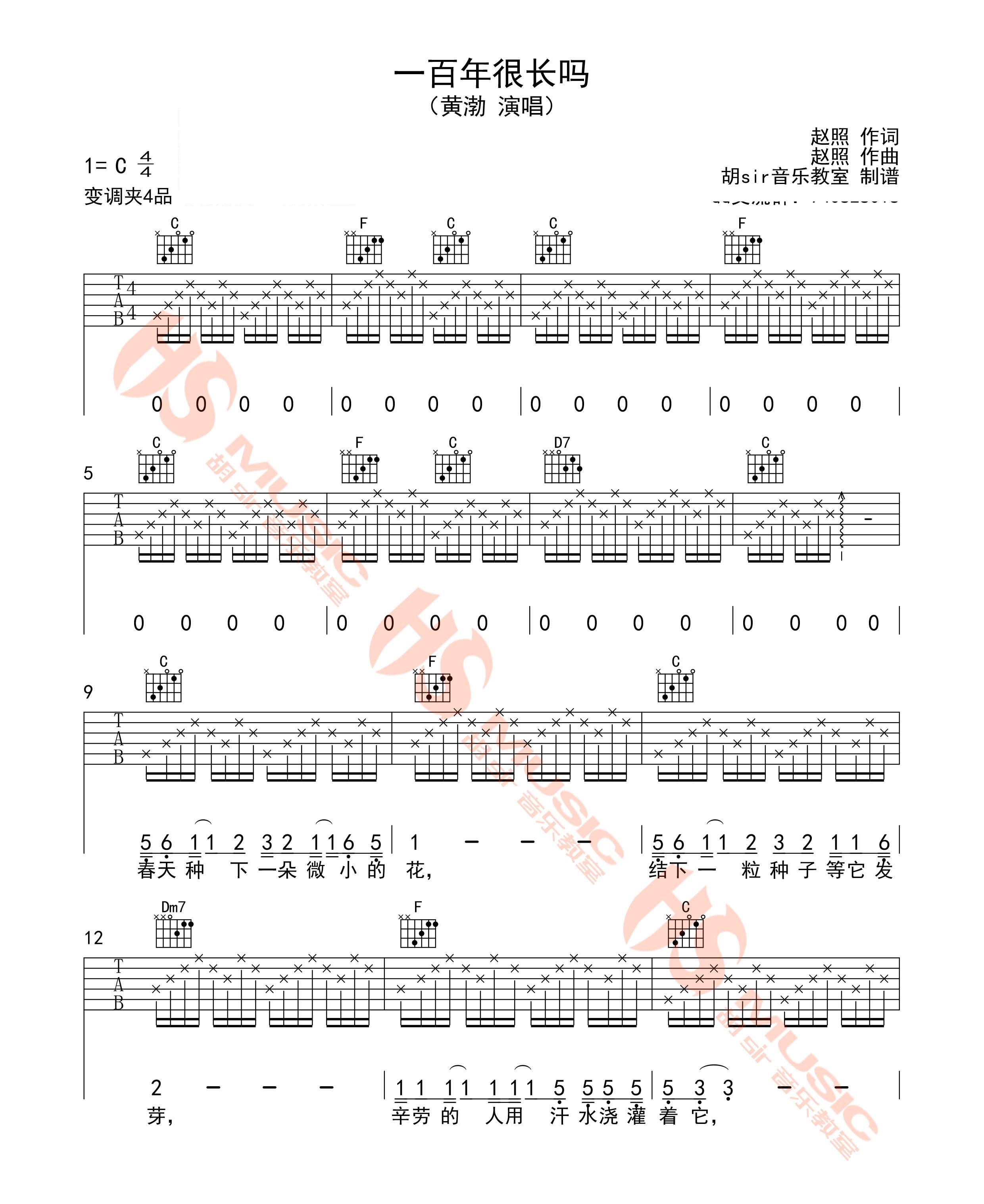 一百年很长吗 黄渤 C调六线吉他谱 - 一百年很长吗 - C调吉他弹唱谱