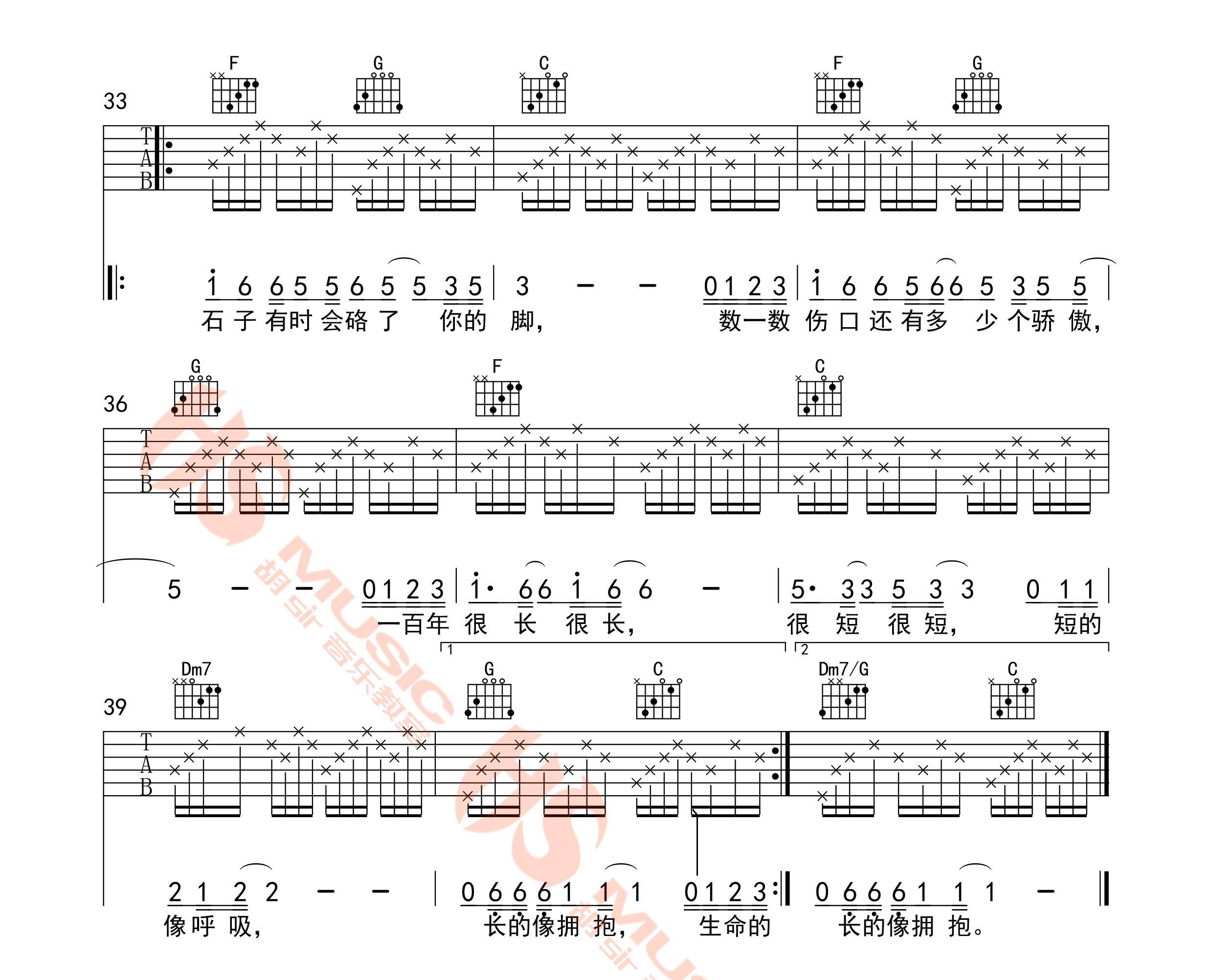 当前位置:琴谱网>吉他弹唱>一百年很长吗 黄渤 C调六线