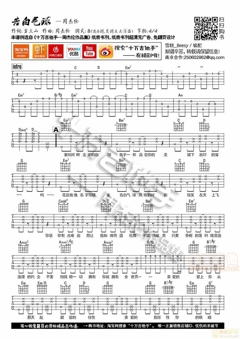当前位置:琴谱网>吉他弹唱>告白气球