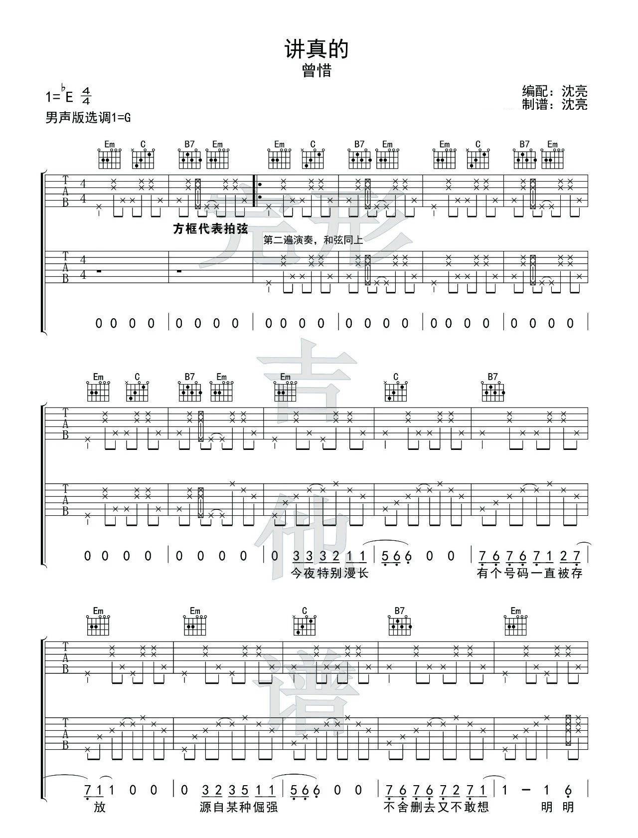 讲真的 曾惜 G调男生版+bE调女生版吉他谱 - 讲真的 - G调吉他弹唱谱