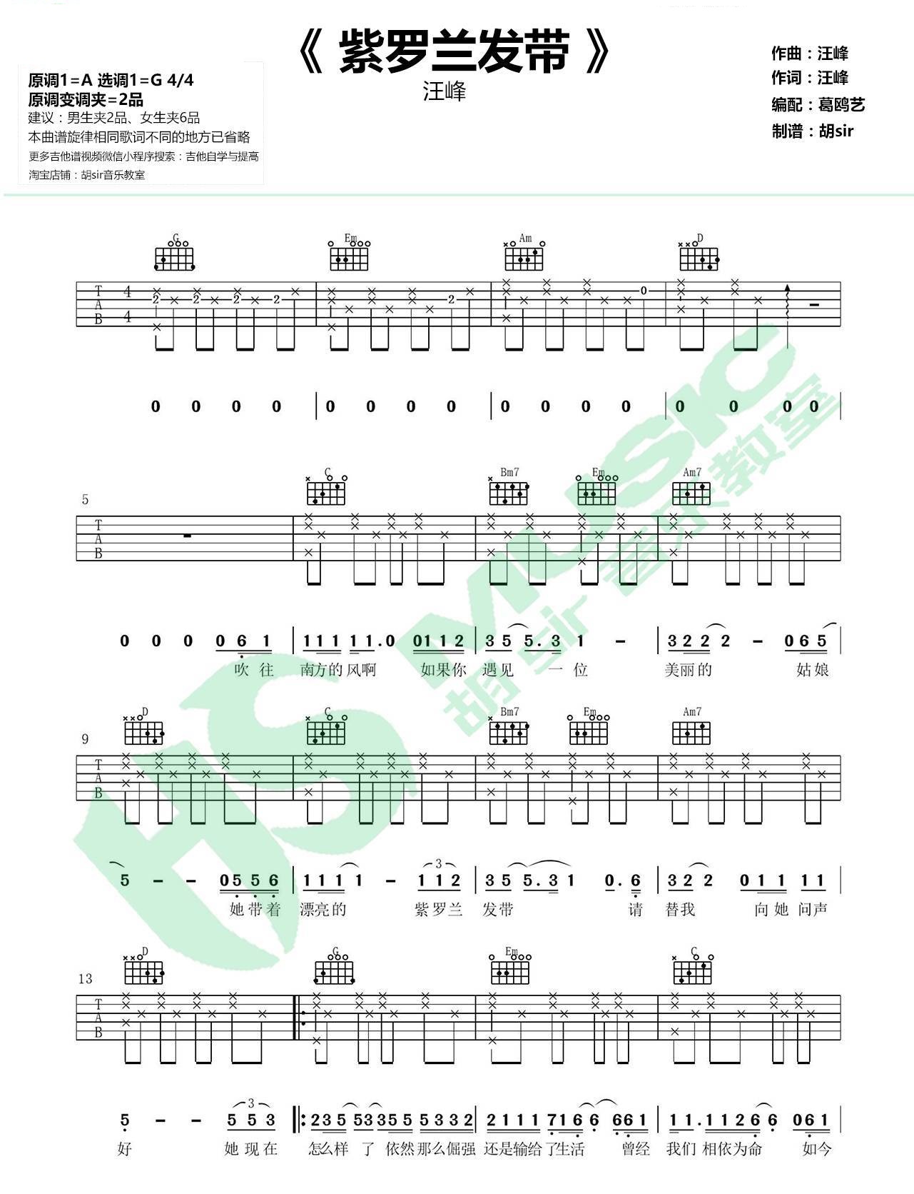 紫罗兰发带 汪峰 G调伴奏吉他谱 - 紫罗兰发带 - G调吉他弹唱谱
