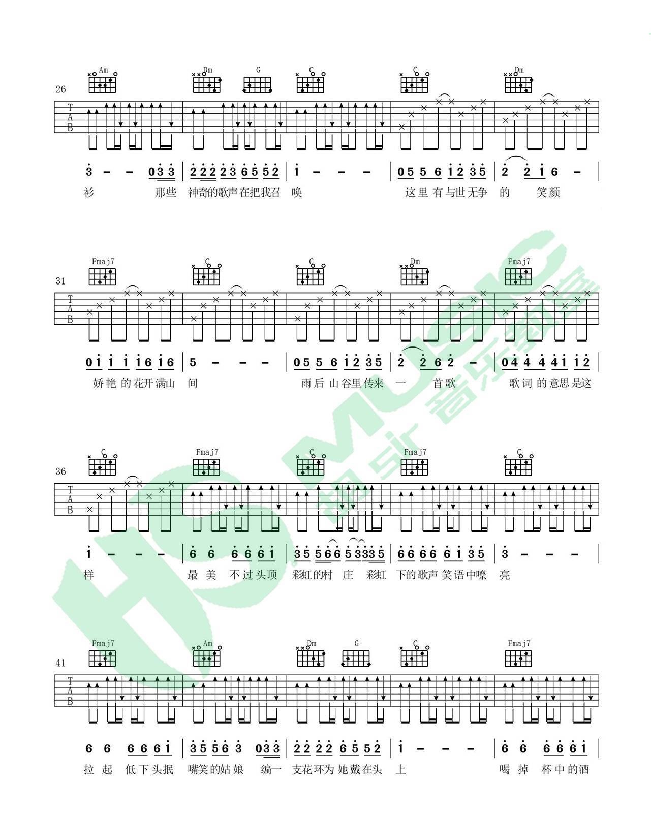 彩虹下面 赵雷 C调图片吉他谱 - 彩虹下面 - C调吉他弹唱谱