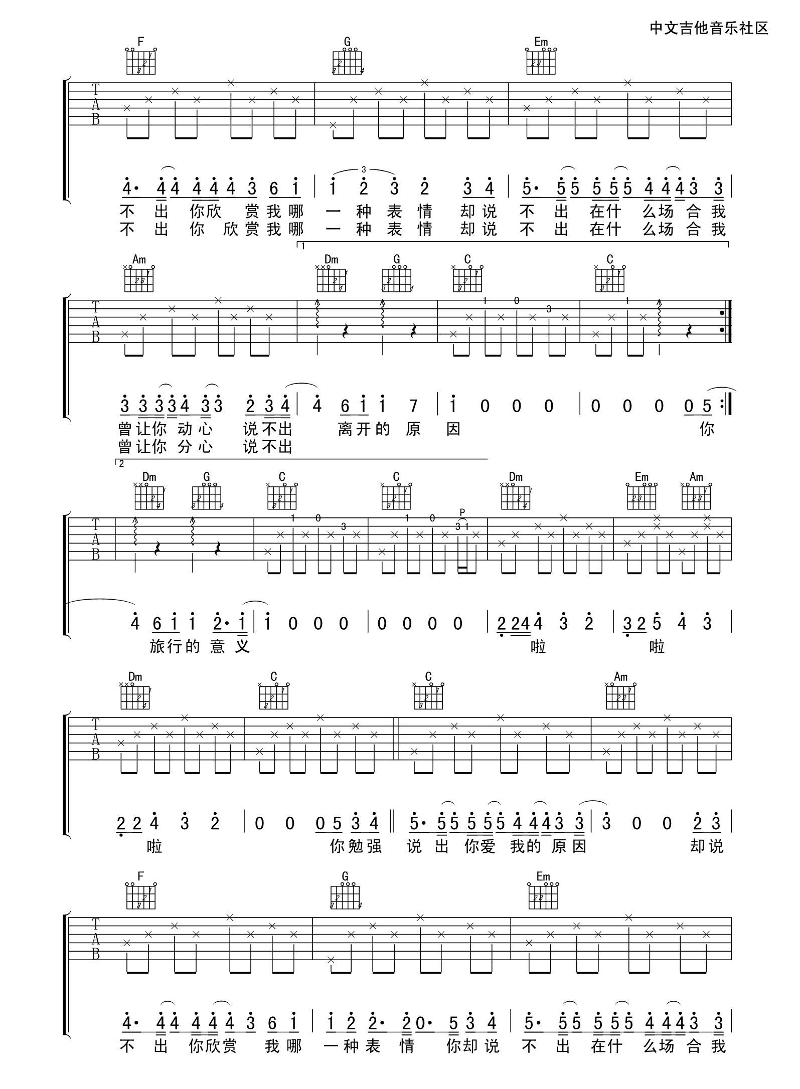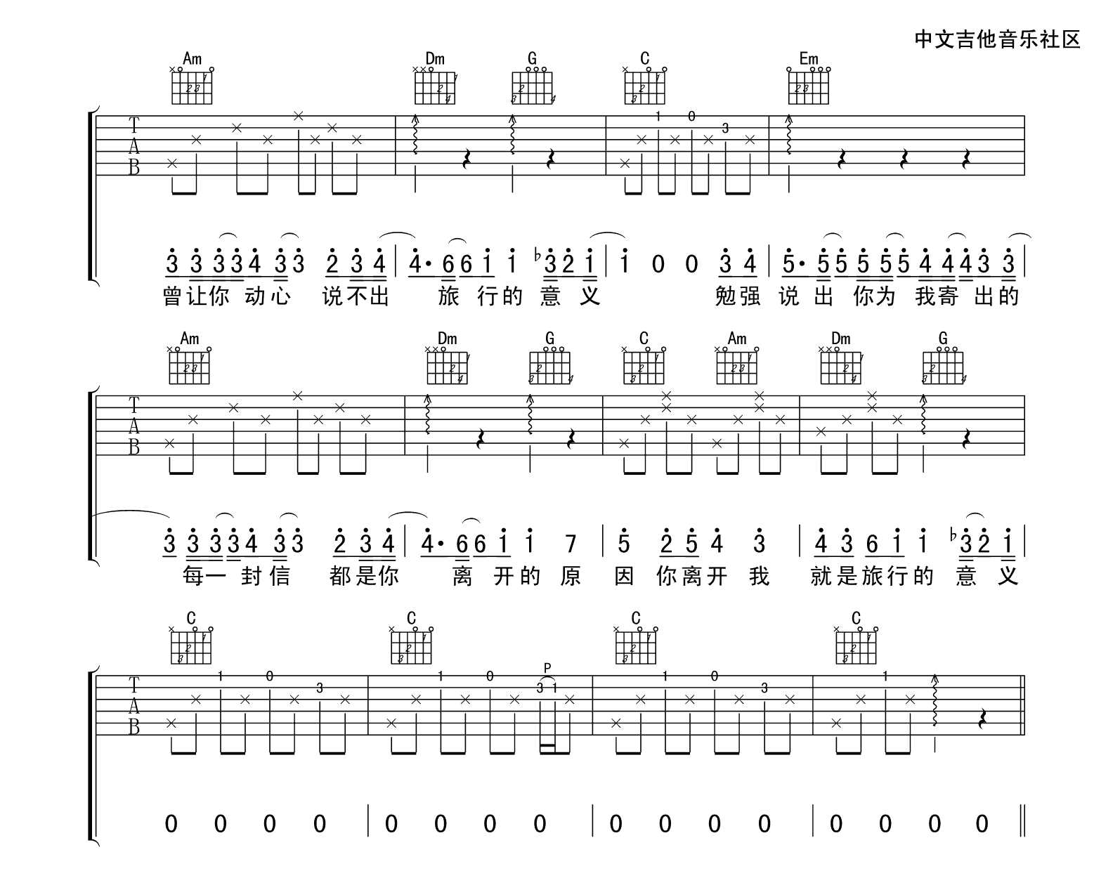 当前位置:琴谱网>吉他弹唱>旅行的意义 陈绮贞 C调六线