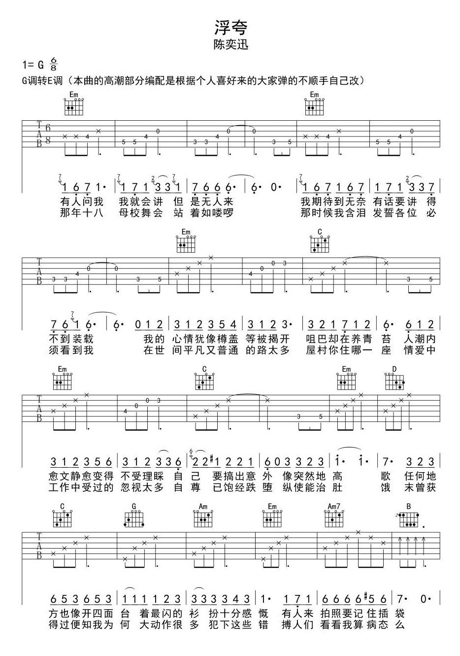 当前位置:琴谱网>吉他弹唱>浮夸 陈奕迅 G调
