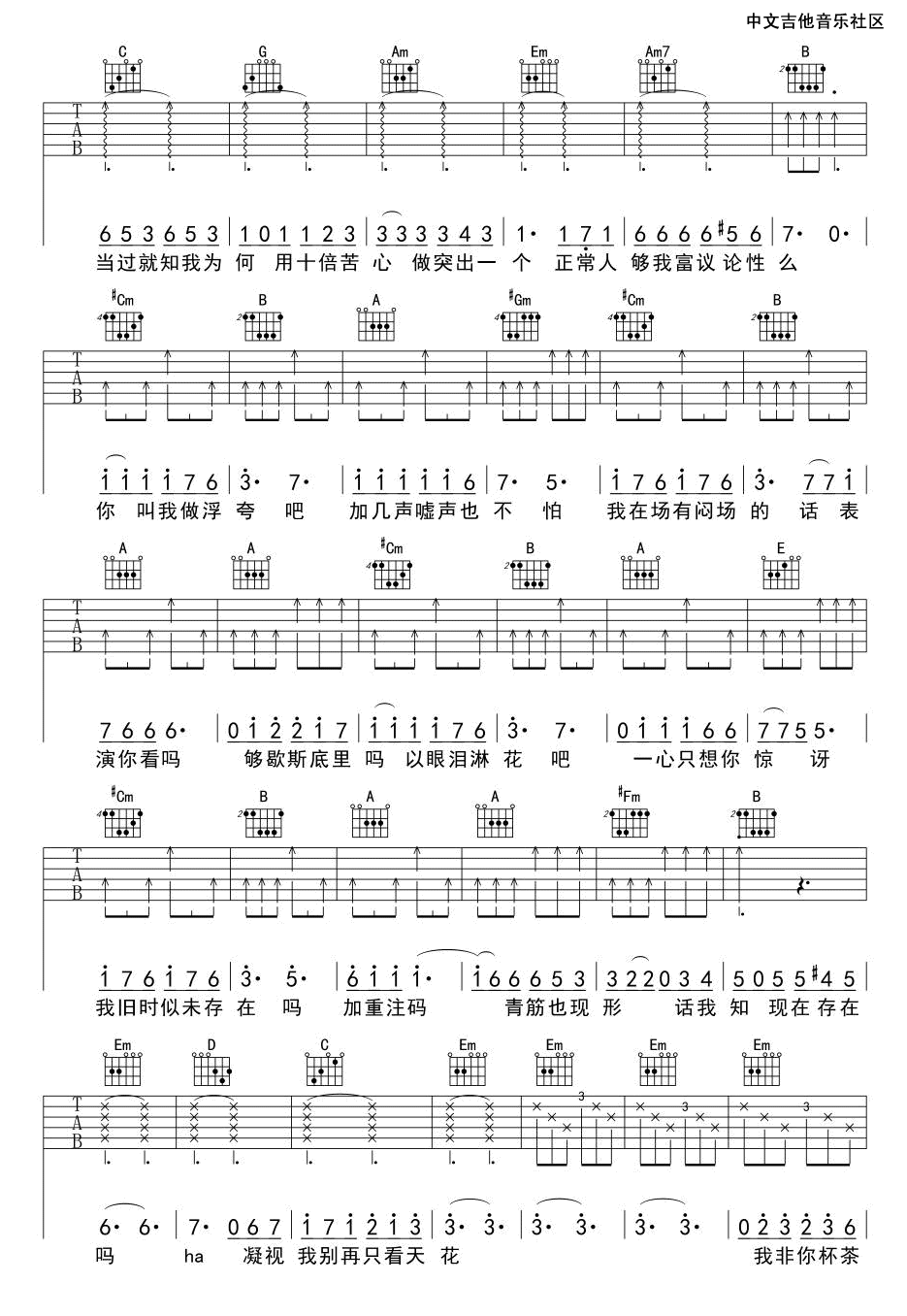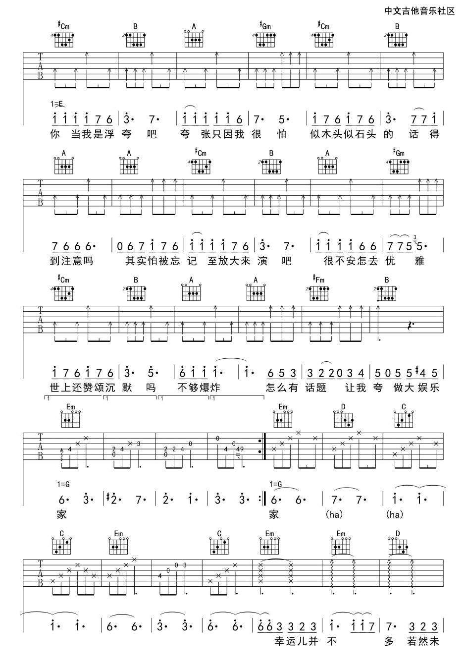 浮夸 陈奕迅 G调吉他谱 - 浮夸 - G调吉他弹唱谱