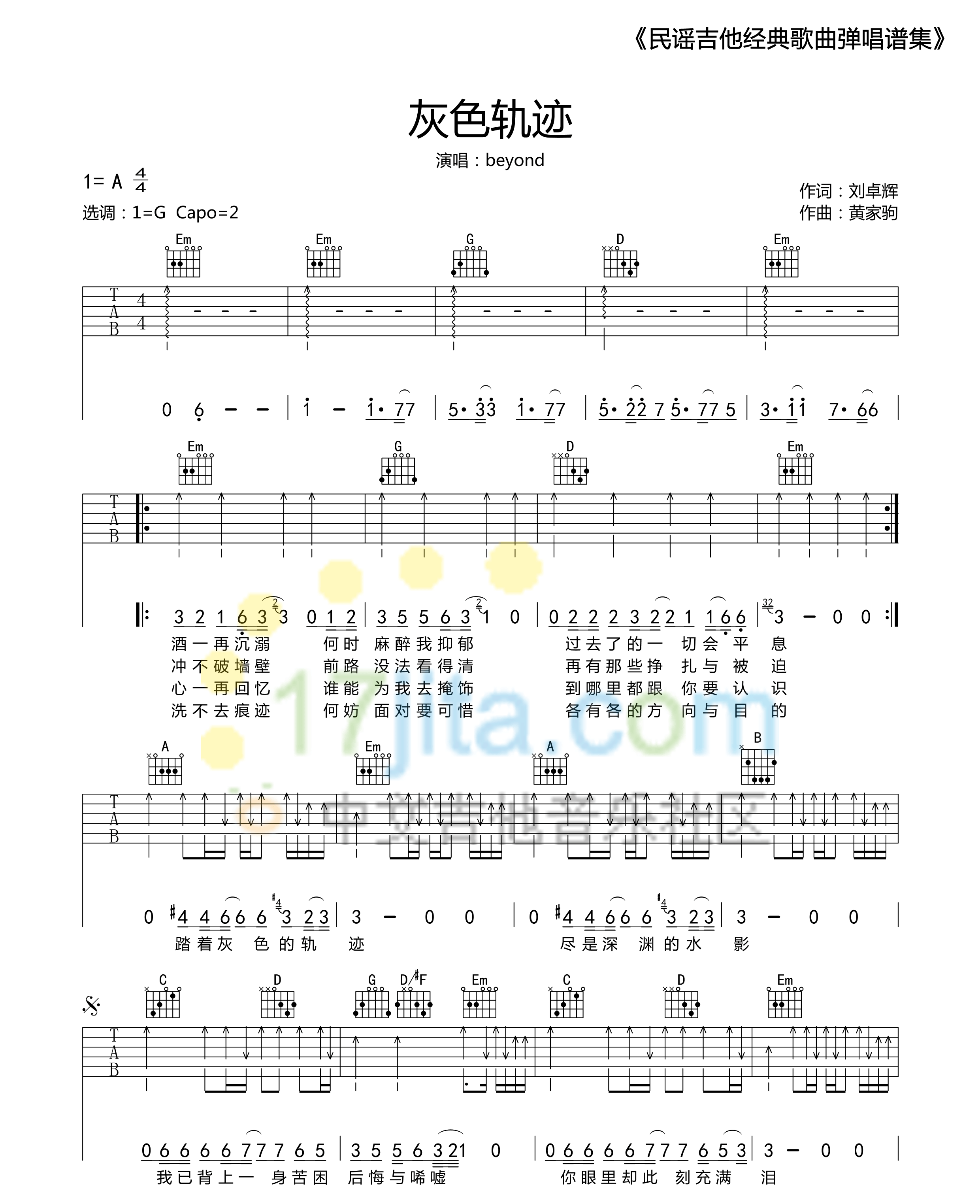 灰色轨迹 beyond G调标准版吉他谱 - 灰色轨迹 - G调吉他弹唱谱