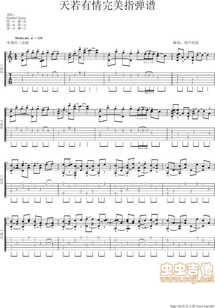 天若有情完美吉他谱 - 吉他独奏谱