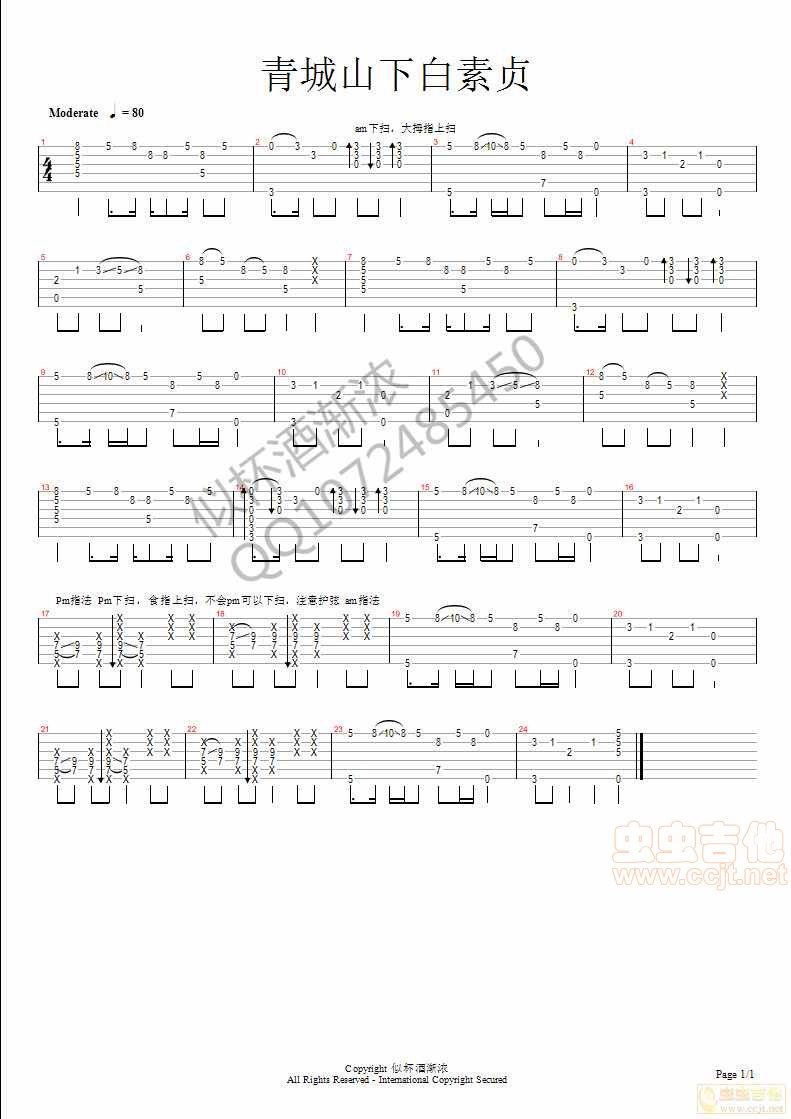 曲谱介绍: 《青城山下白素贞》吉他独奏谱,共有1张高清图谱,免翻页排版设计。