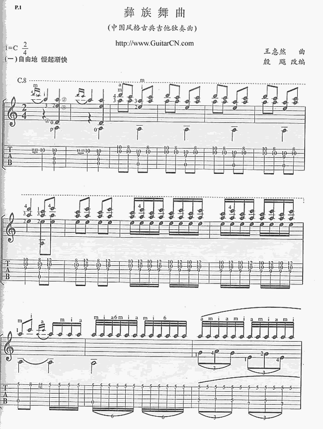 曲谱介绍: 《彝族舞曲》吉他独奏谱,共有17张高清图谱。