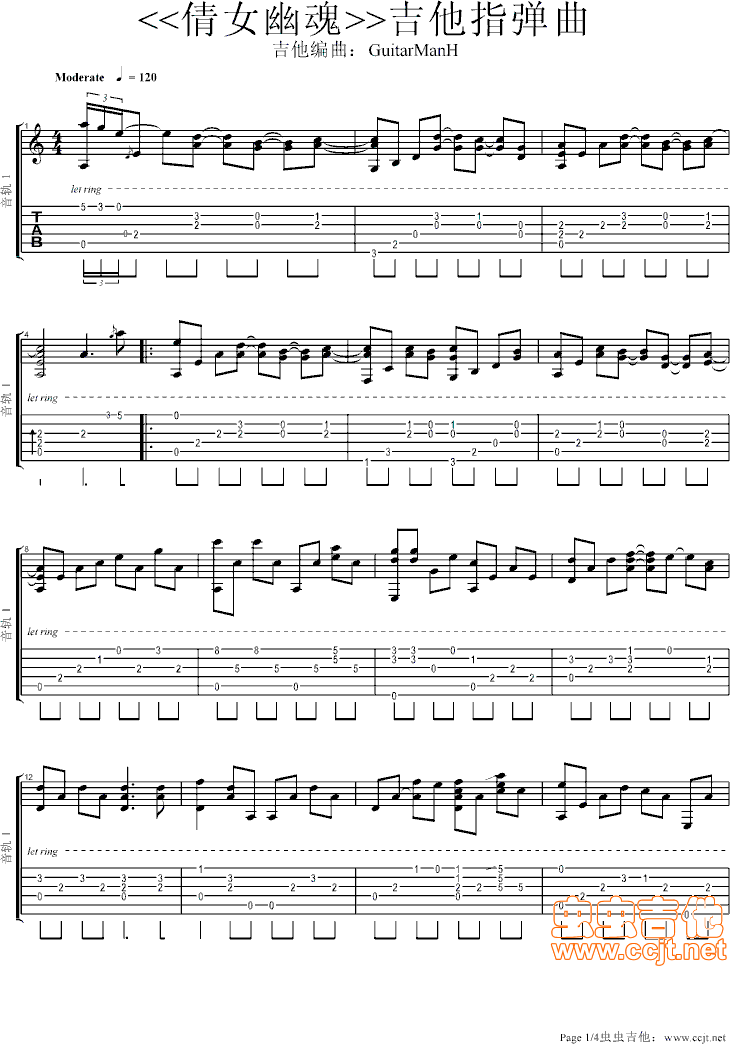 当前位置:琴谱网>吉他独奏>倩女幽魂