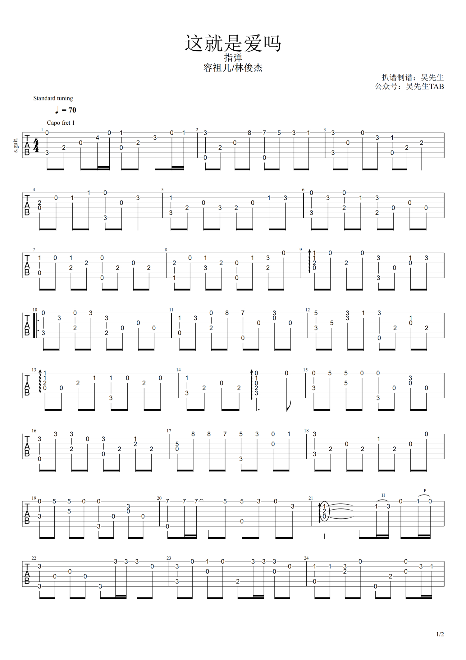 • 这就是爱吗吉他谱 - 容祖儿/林俊杰 - C调吉他独奏谱第1张