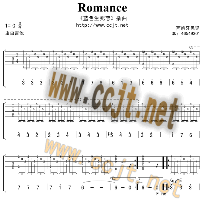 爱的罗曼史吉他谱 - 吉他独奏谱