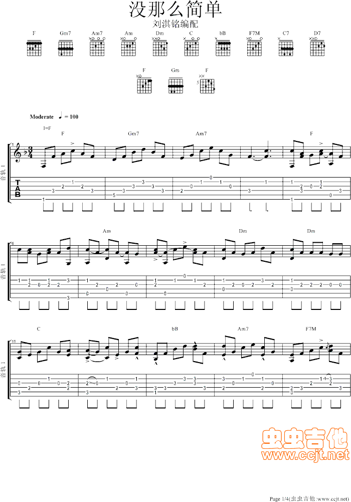 曲谱介绍: 《没那么简单修改版》吉他独奏谱,共有4张高清图谱。